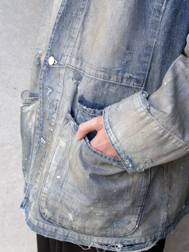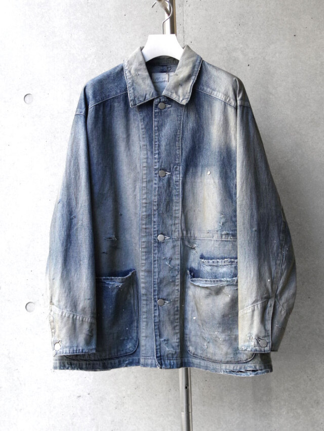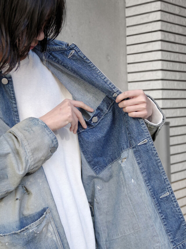 Indigo and Black have meticulously adjusted the color shading and faded areas to pursue a deep sexiness, and White expresses depth by "dyeing white with white" using ANCELLM's unique technique. In order to further increase the overall depth, the damage processing is applied while carefully balancing, and the paint and dirt added to the finish create an expression that can only be produced by this coverall.