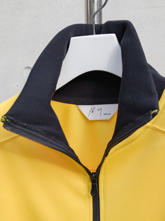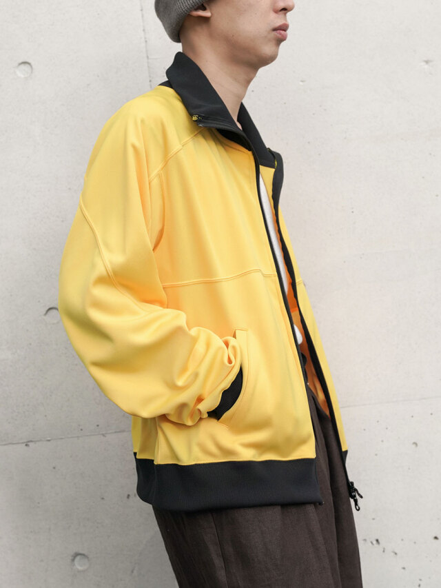 シンプルながらディテールで魅せる、ハイネック仕様のトラックジャケット。フラットな印象を避けるため、生地の切り替えを巧みに取り入れ、独自のパターンで構成されています。ミニマルな中にもデザイン性が光る一着です。