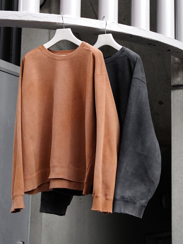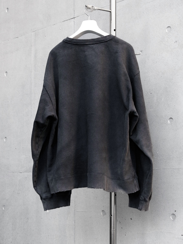エイジング加工を施したクルーネックスウェット。ネック周りや袖口、身頃裾などにダメージを入れ、ヴィンテージの味わいを表現した一着。決してやりすぎない絶妙なダメージ感を意識された本作は、どこか品を残した仕上がりで、幅広いコーディネートにご活用頂けます。