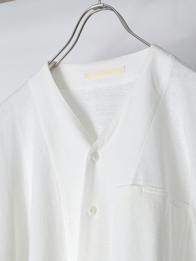 The fabric is a jersey made from Belgian linen, characterized by linen’s natural irregular texture and a dry, smooth touch. It offers a rich sense of depth and a refined material expression, along with excellent breathability for comfortable wear across seasons.