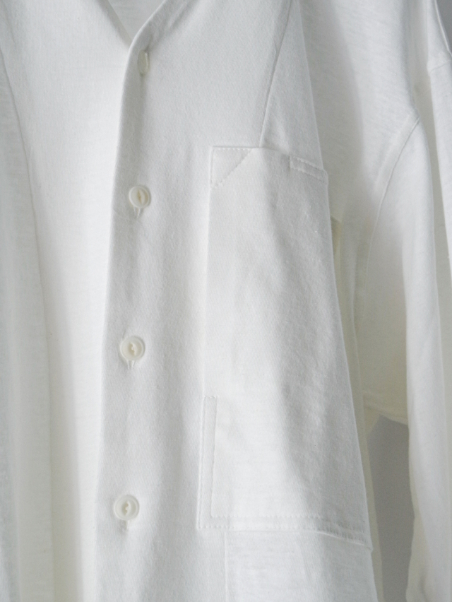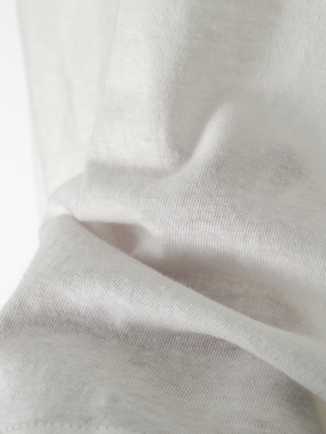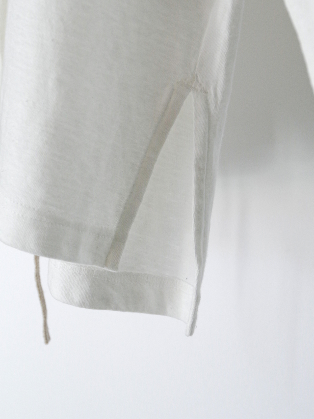素材にはベルギーリネンを使用した天竺生地を採用。リネン特有のナチュラルなムラ感と、さらりとしたタッチが心地よく、奥行きを感じさせる味わい深い表情が特徴です。通気性にも優れ、季節を問わず快適に着用いただけます。