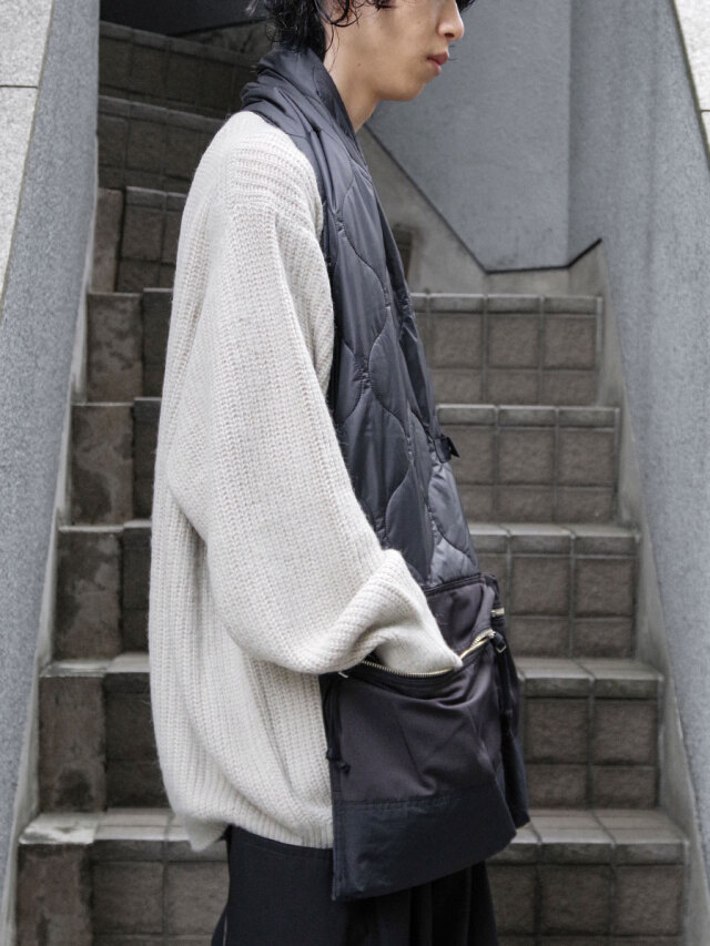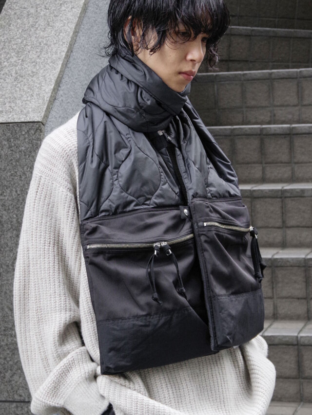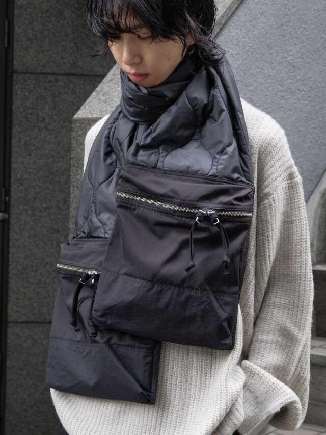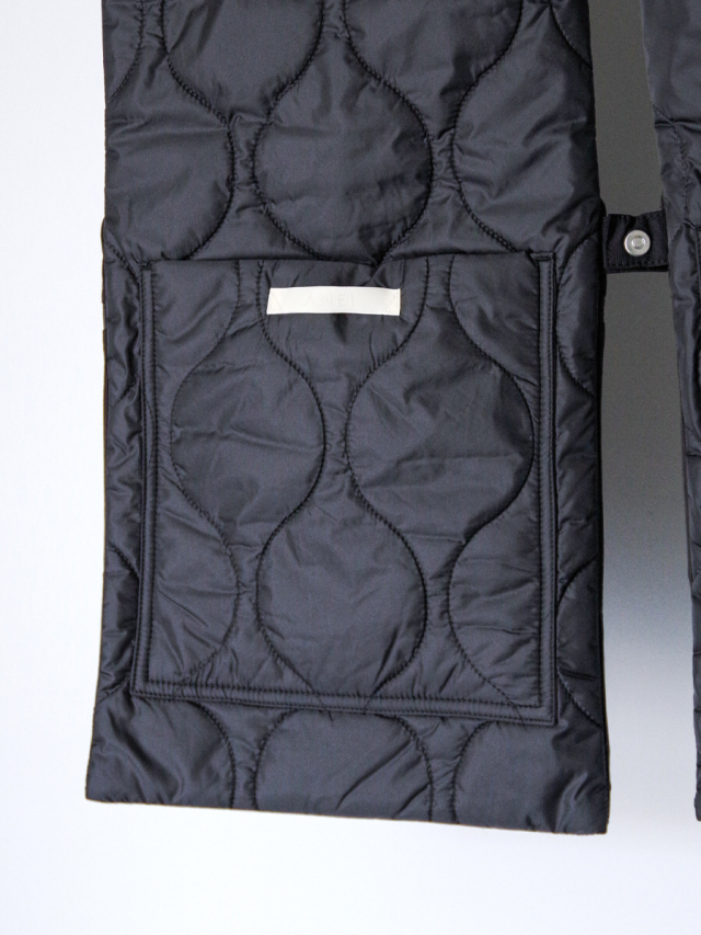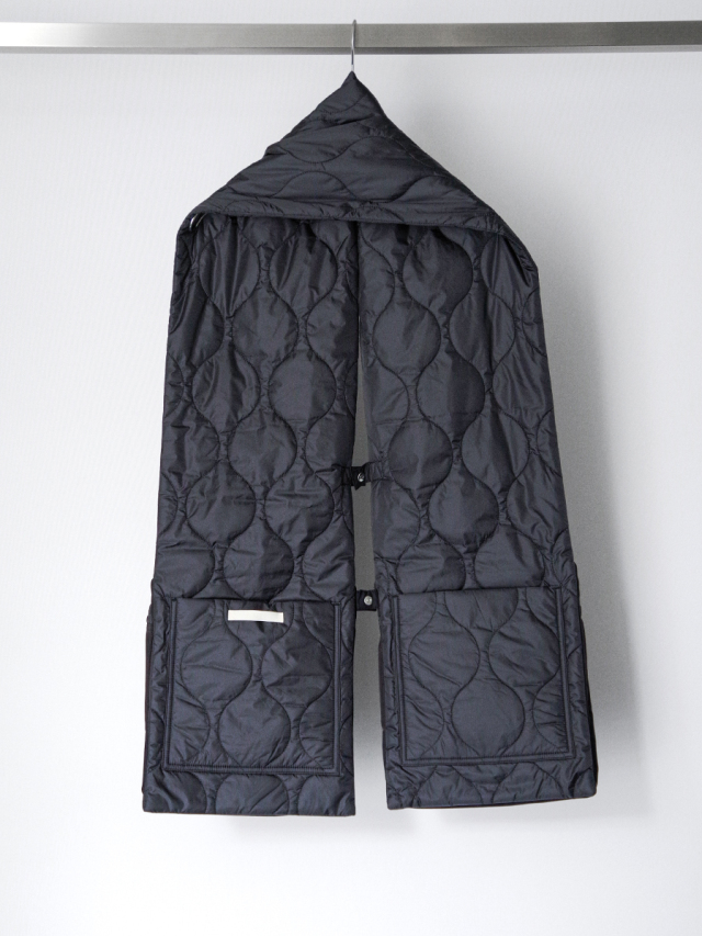 異素材を組み合わせたハイブリッドデザインで、コーディネートのアクセントとしても活躍。キルティング部分を首に巻き付けるようにも使えるため、巻き方や見せ方をアレンジすることで、シーンや気分に合わせた多彩なスタイリングが楽しめます。