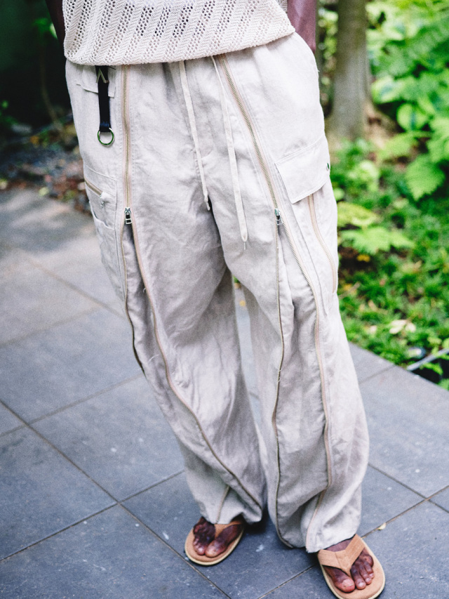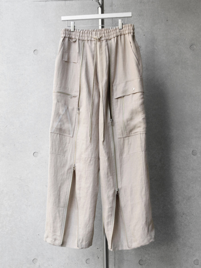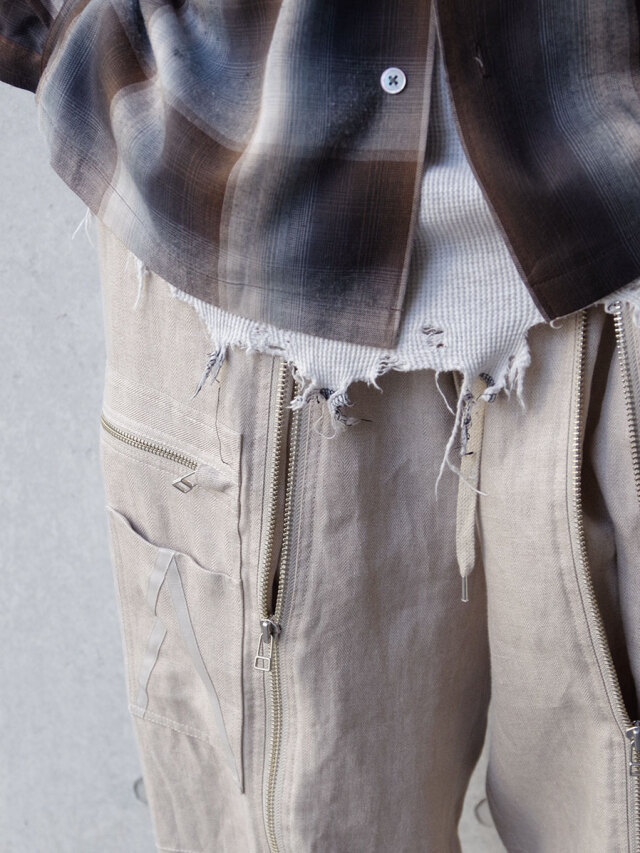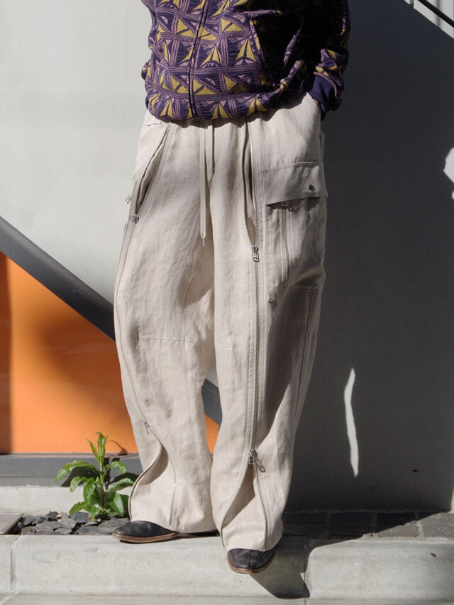 アメリカ軍A-11タイプのパイロットパンツをデザインベースとした、巧みなファスナーデザインが存在感を放つフライトパンツ。