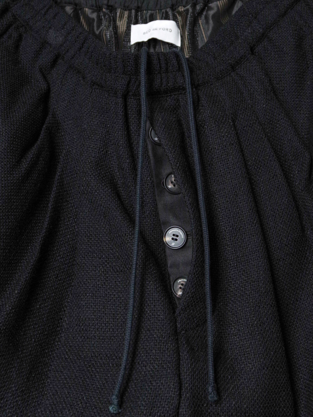 Three tucks at the waist create natural volume and a relaxed silhouette. The hems are finished with double cuffs, adding a refined touch while maintaining a comfortable, easy-wearing character.