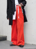 ワイドシルエットの5ポケットパンツ。