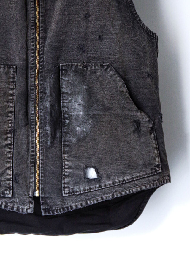 1980年代当時、建設・運送・農作業などの現場でワーカーたちの冬の相棒として愛されてきたダックベスト。その確かな機能性とタフなルックスをベースに、今作ではBOW WOWらしいヴィンテージ加工を施し、長年着込まれたようなフェード感やアタリ、擦れをリアルに再現しています。