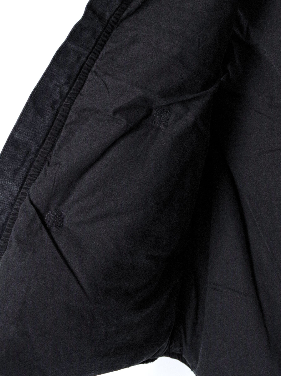 厚手のヘビーオンス・コットンダック地に中綿を仕込み、耐久性と防寒性を兼ね備えた一着です。