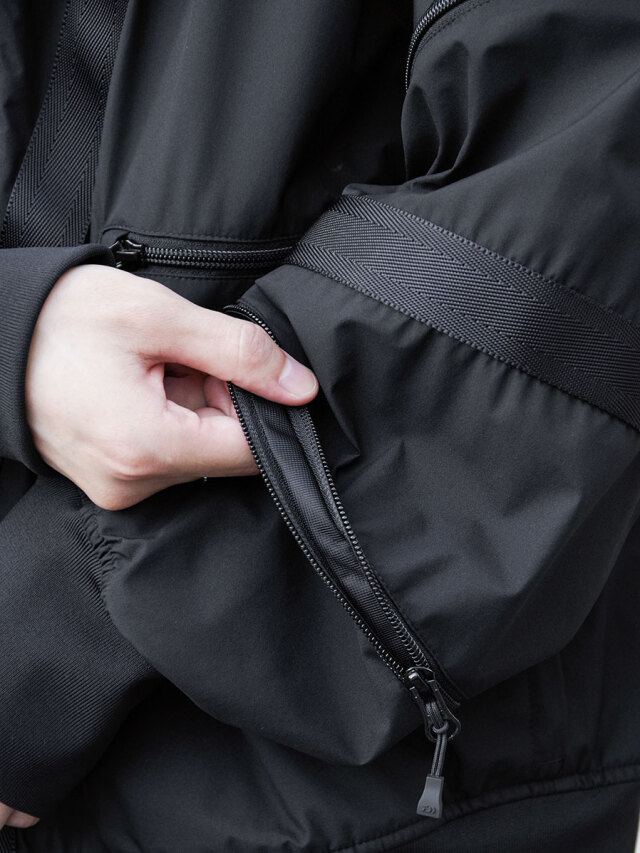 ベンチレーションは背面ファスナーとアーム周りに配置され、効率的に蒸れを排出。フロント腰元には4箇所のポケットを備え、さらに内側にも2つのポケットを装備し、収納力も十分です。