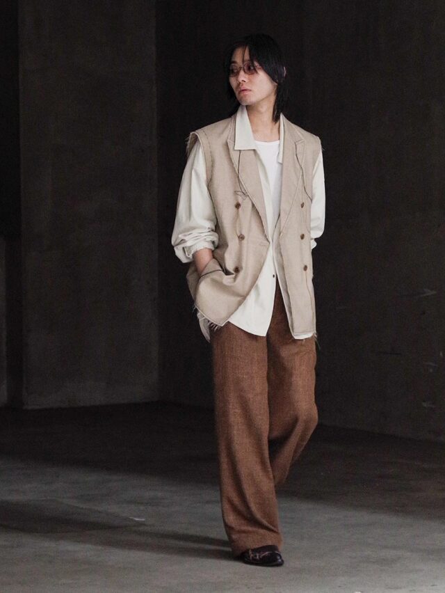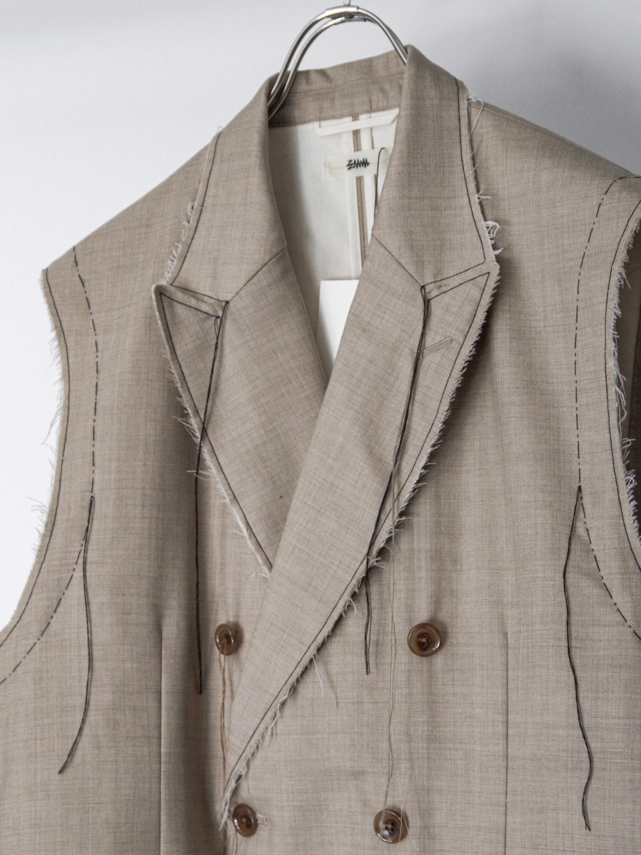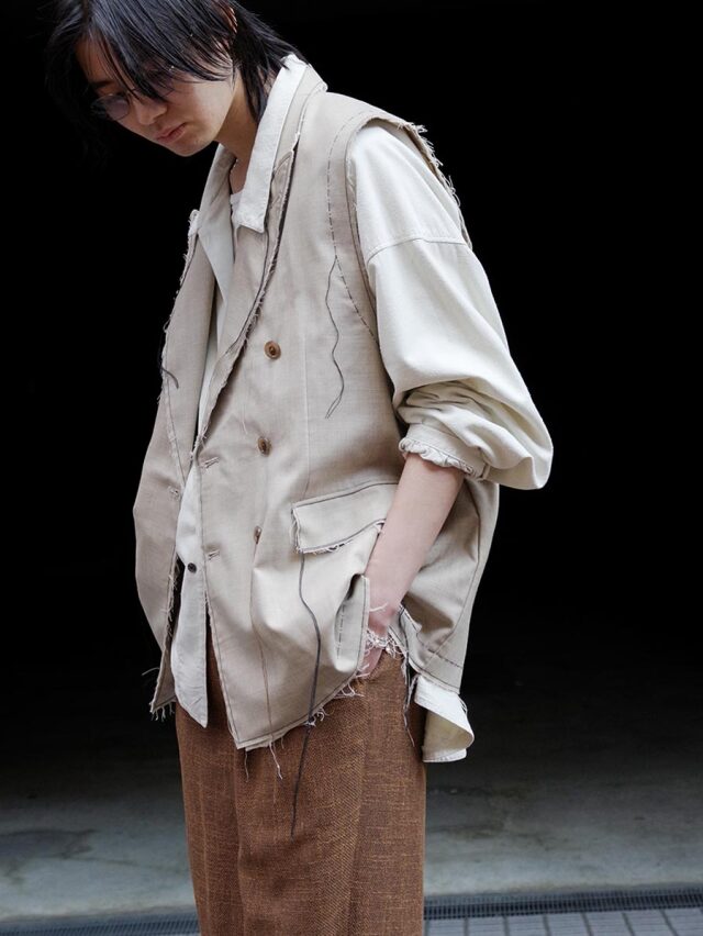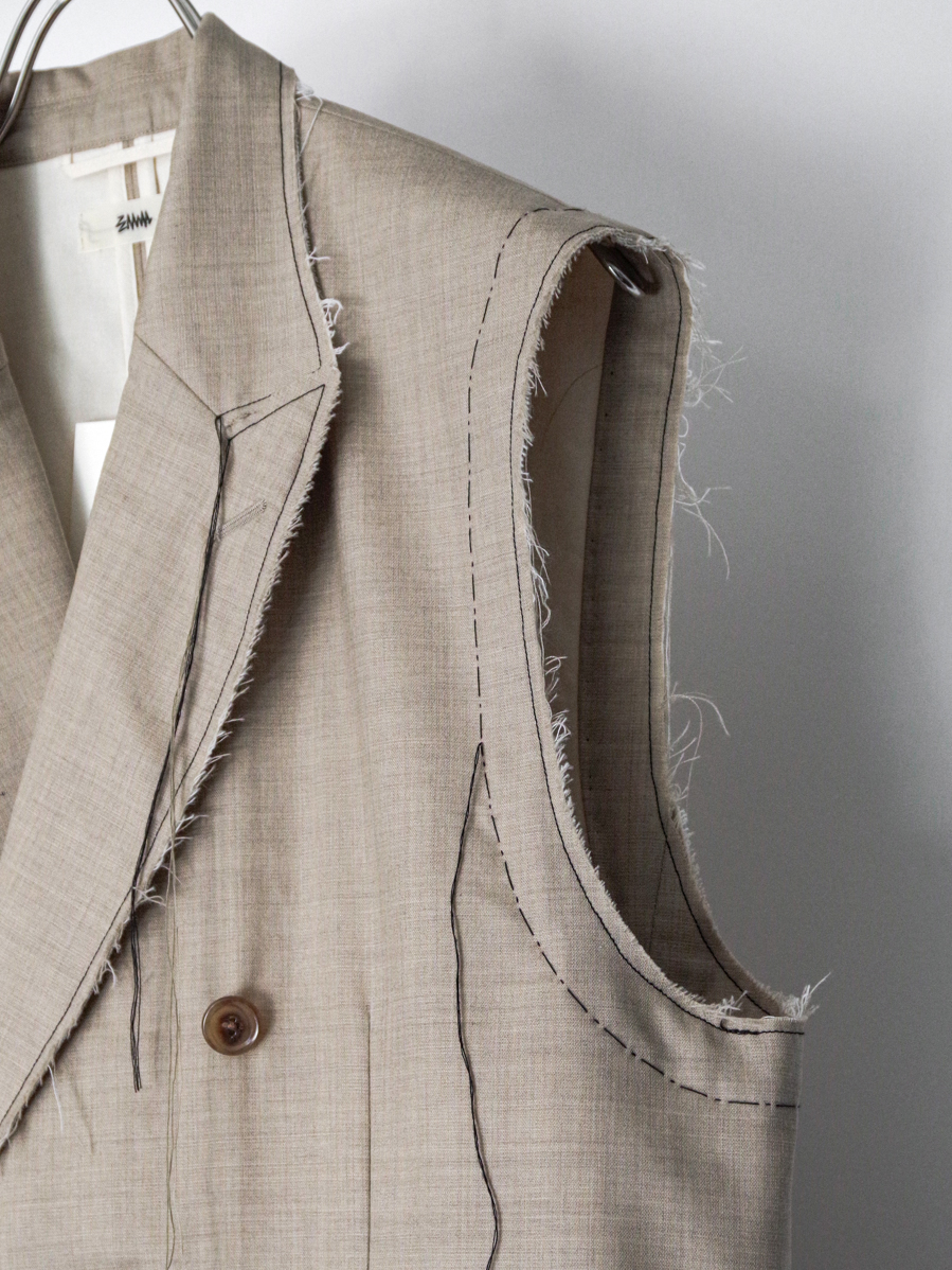 A tailored vest from EMAM distinguished by its strong sense of craftsmanship.
