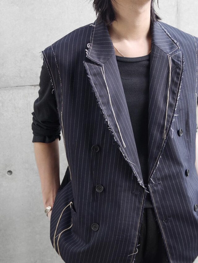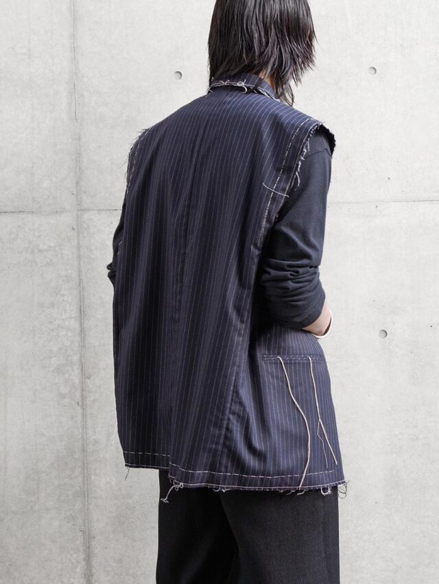 A tailored vest from EMAM distinguished by its strong sense of craftsmanship.