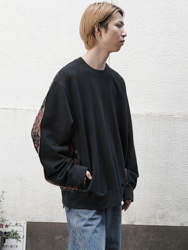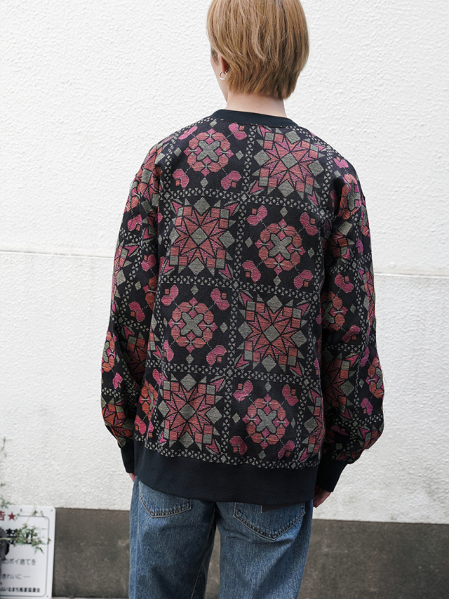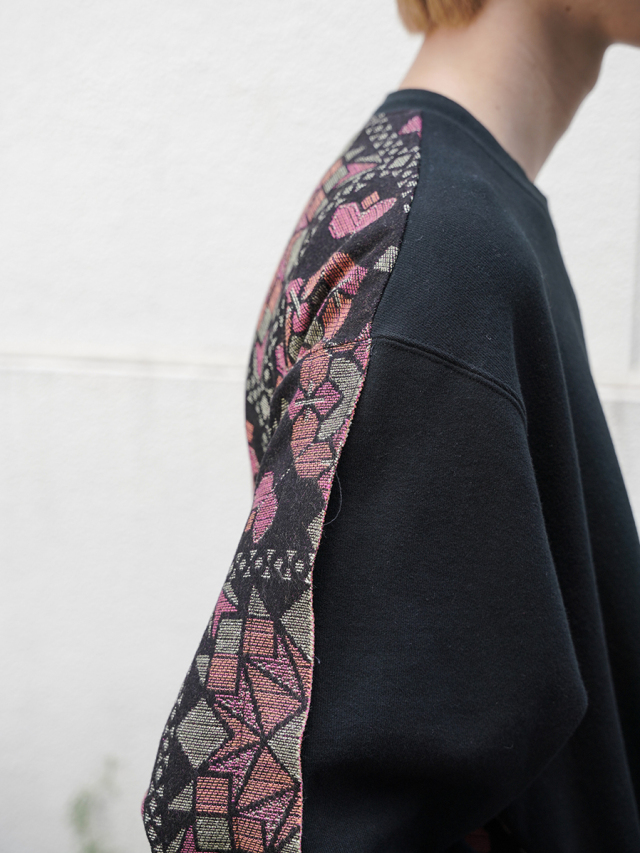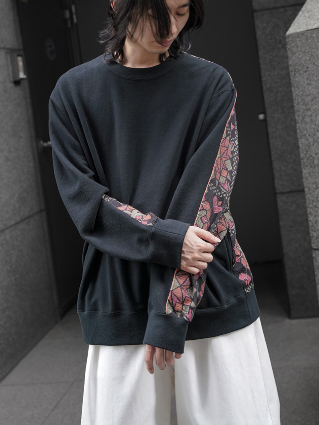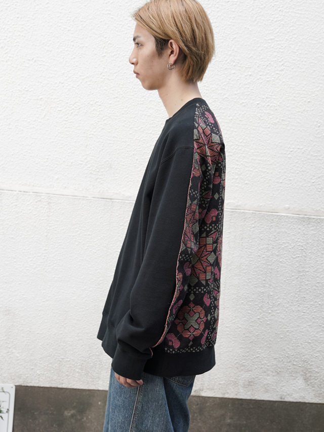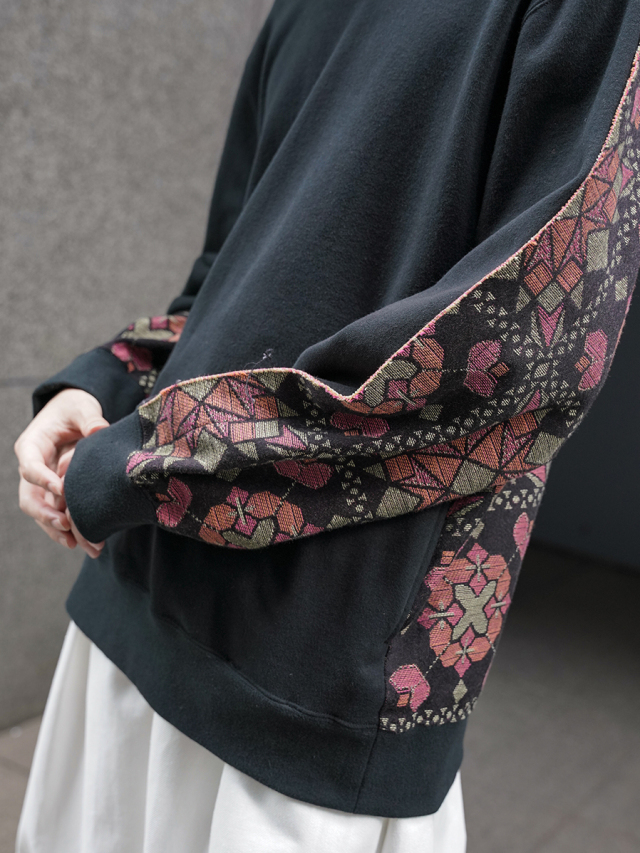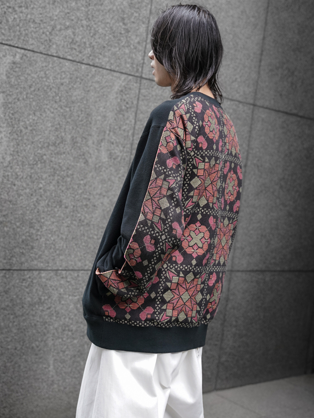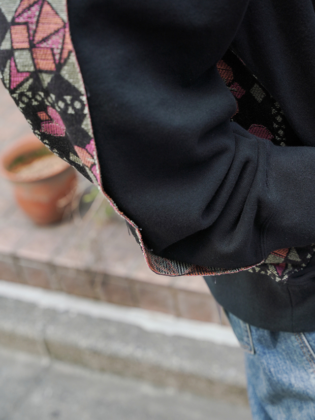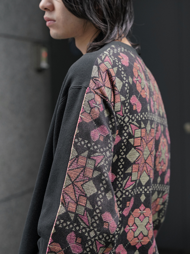 フロントにはヴィンテージのようにふっくらとこなれた風合いを備えた裏毛素材を、バックにはオリジナルのジャガード生地を採用。