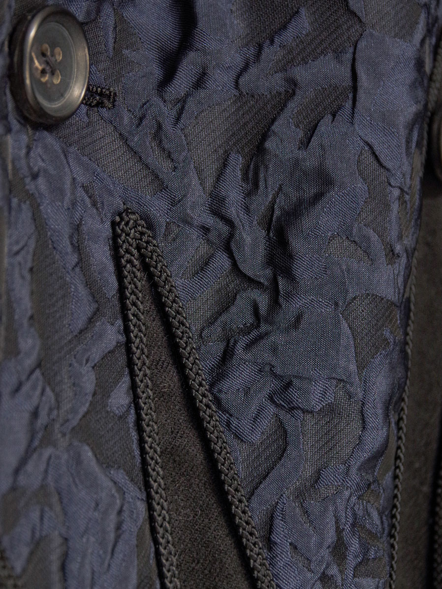 The design takes inspiration from the 1950s British Army double-breasted greatcoat, which has been stripped of its original details to create a minimalist foundation. Onto this, EMAM layered its signature playful design elements, including intricate patchwork crafted from multiple materials. Each patch is edged with applied cord, heightening the three-dimensional effect and showcasing the artisanal labor that goes into every piece.