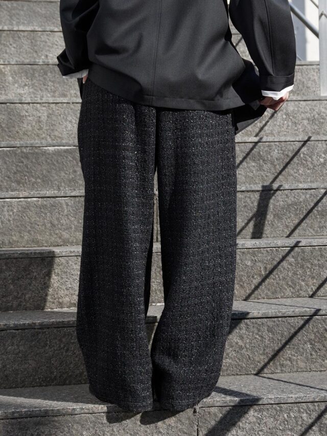Finished with original buttons engraved with the JUHA logo, these slacks highlight both material character and thoughtful detailing.