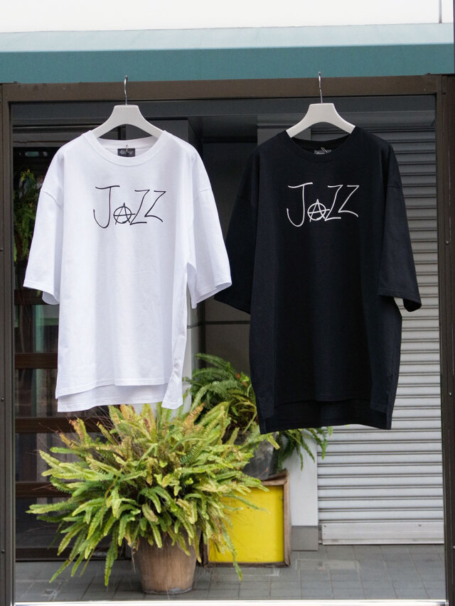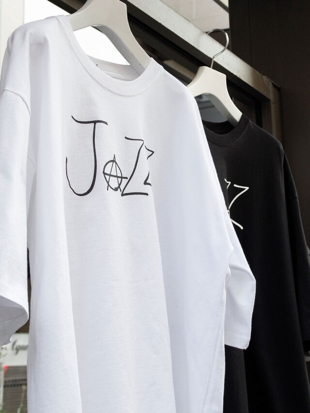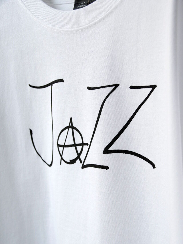フロントに配置した「JAZZ」のプリントが目を引く一着。Aの文字をアナーキーマークに置き換えた、LEHらしいエッジの効いたデザインになっています。