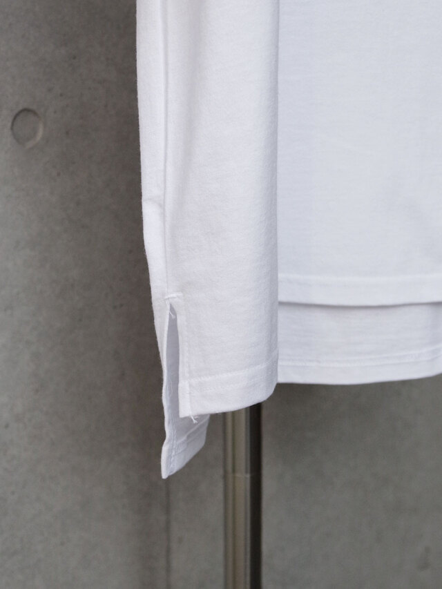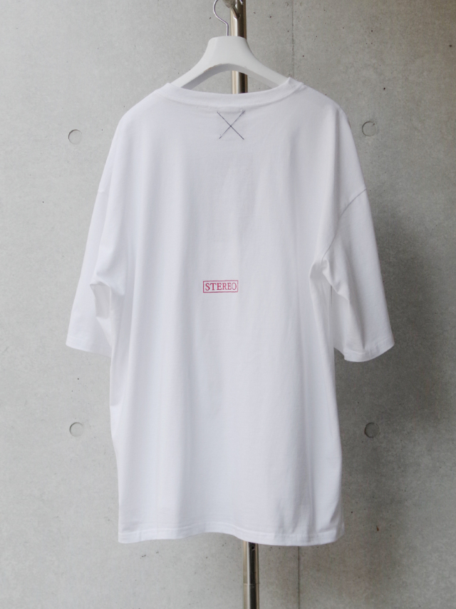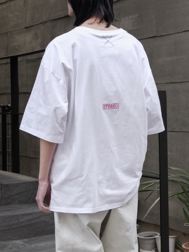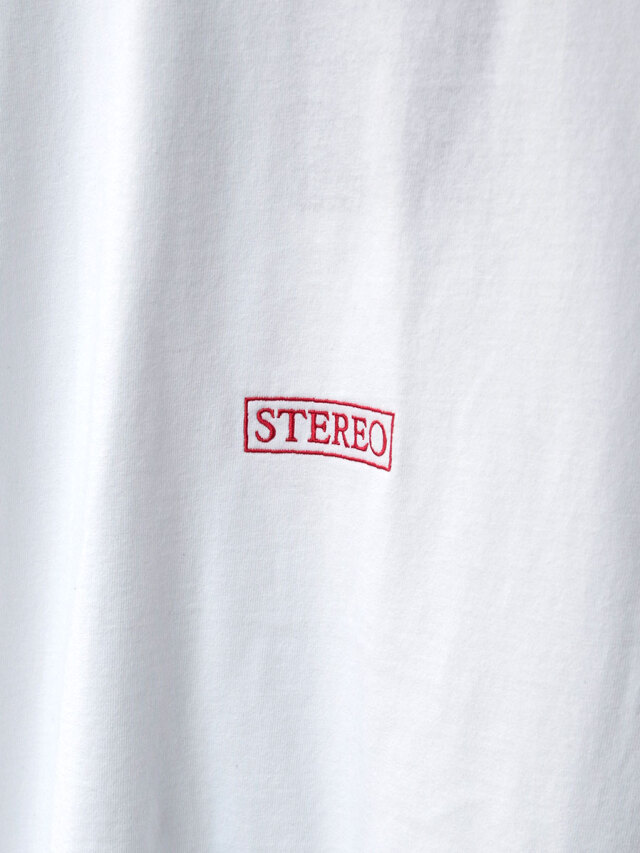 バックには「STEREO」の文字を刺繍で施し、プリントと刺繍の異なる質感が絶妙なアクセントに。前後で着丈に差をつけたデザインで、サイドからのシルエットにも遊び心をプラスしています。