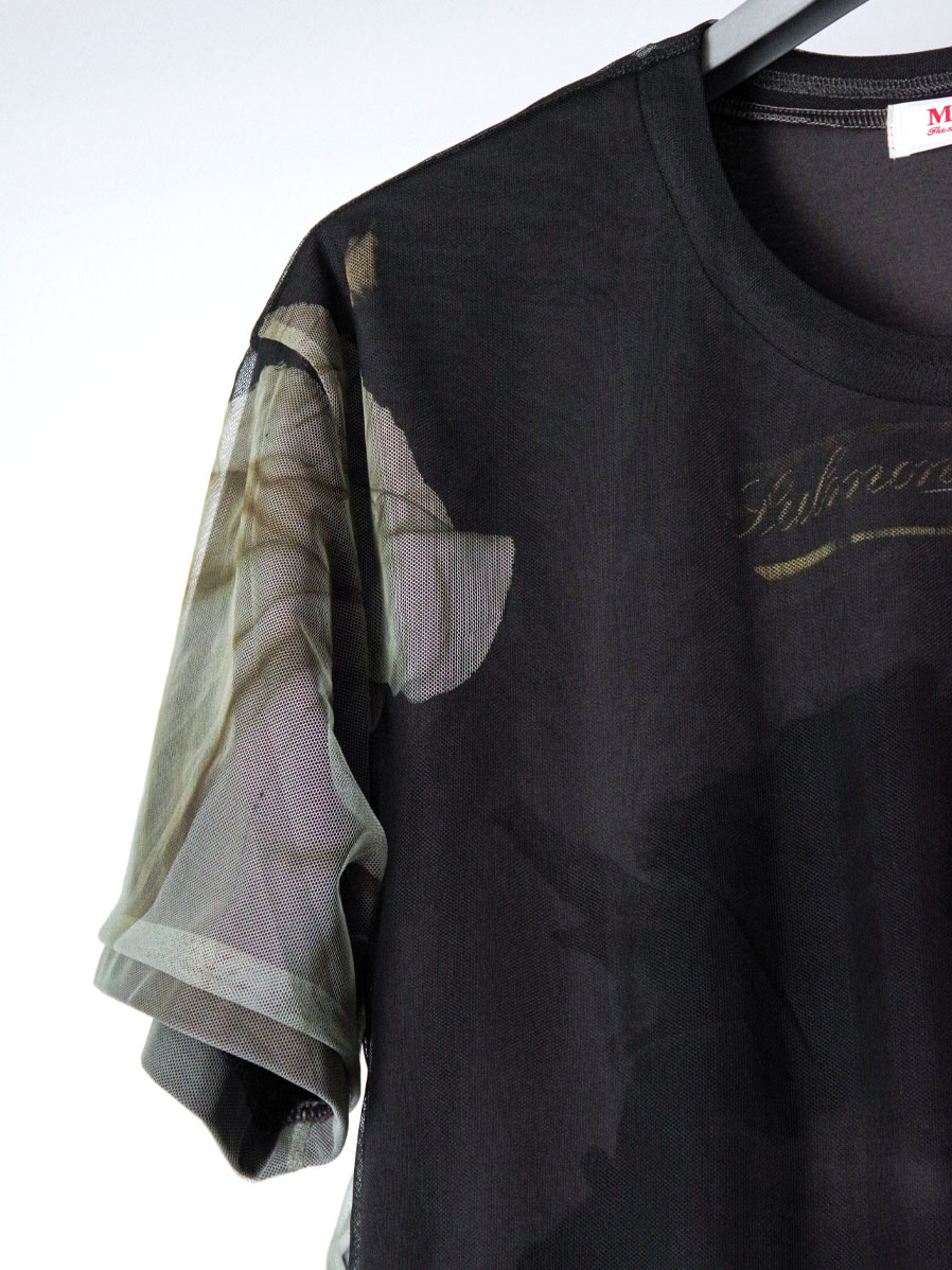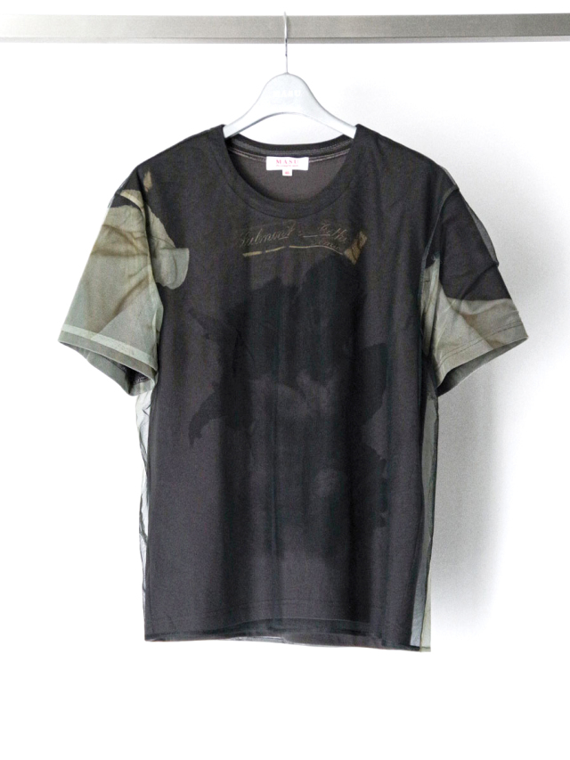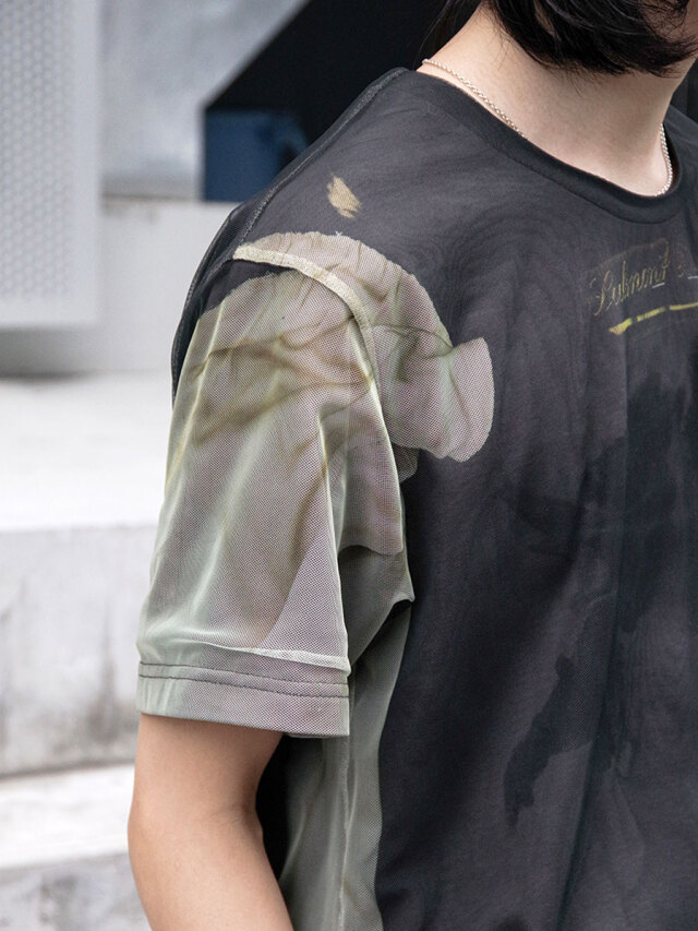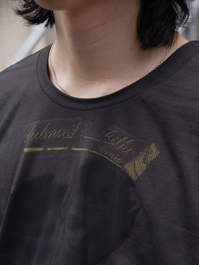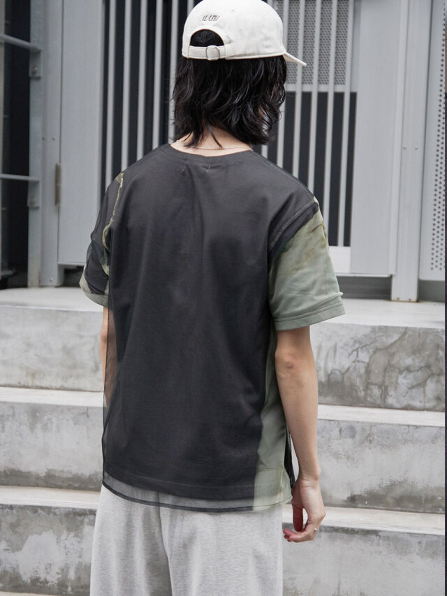 二枚構造で仕立てられたプリントTシャツ。