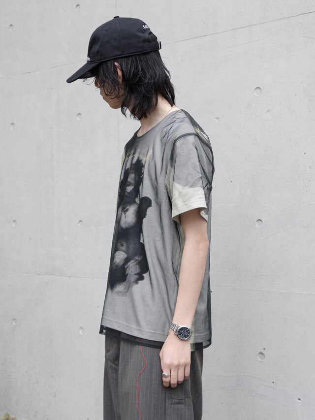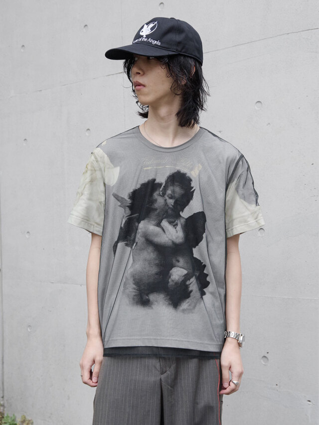 フロントには、静かに月に腰掛ける天使と〈The Scene of the Angels〉の刺繍が施され、控えめながらも物語性を感じさせるアクセントとなっています。