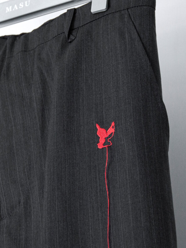 As time passes and the threads gradually wear and thin, the embroidery evolves, transforming the trousers into a piece that becomes uniquely personal to its owner.