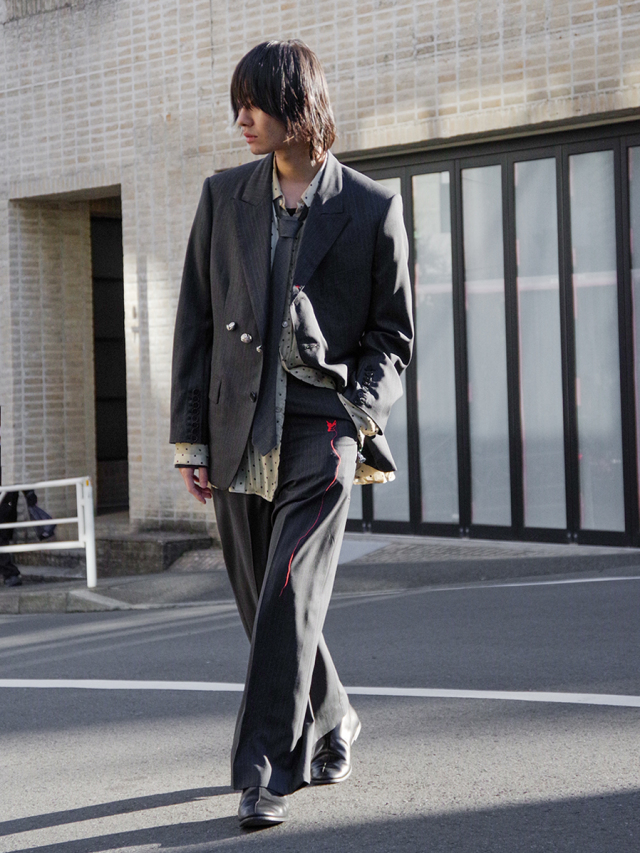 同素材の RED BAR TACK TAILORED JACKET とセットアップでの着用もおすすめ。