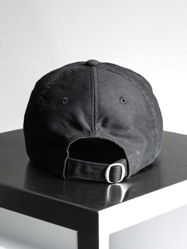 シンプルながら存在感を放つキャップは、スタイリングのアクセントとして活躍する一品です。