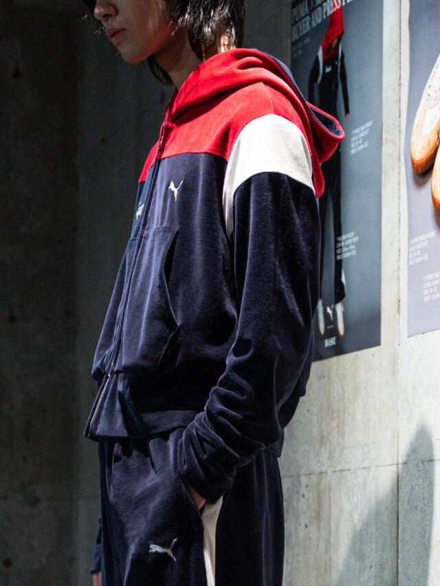 1968年に誕生したPUMAのアイコニックなトラックジャケット「T7(ティーセブン)」を、MASUのフィルターを通して再構築した一着。