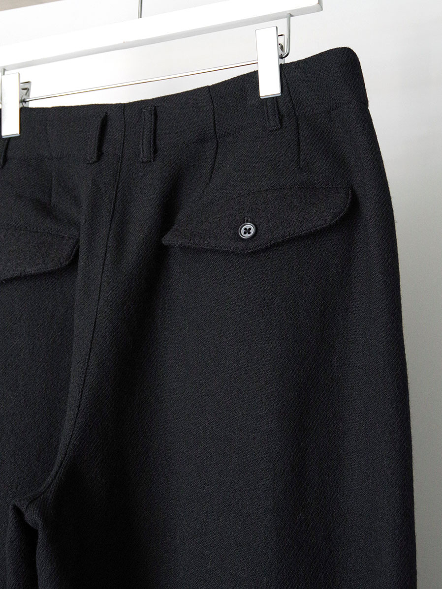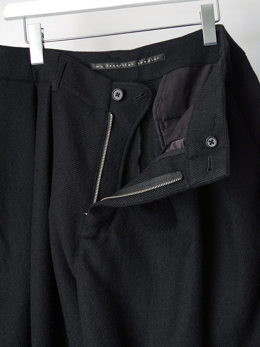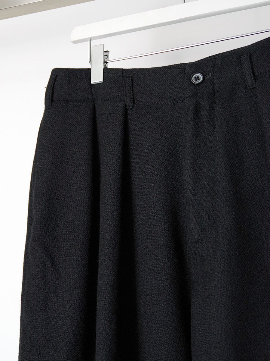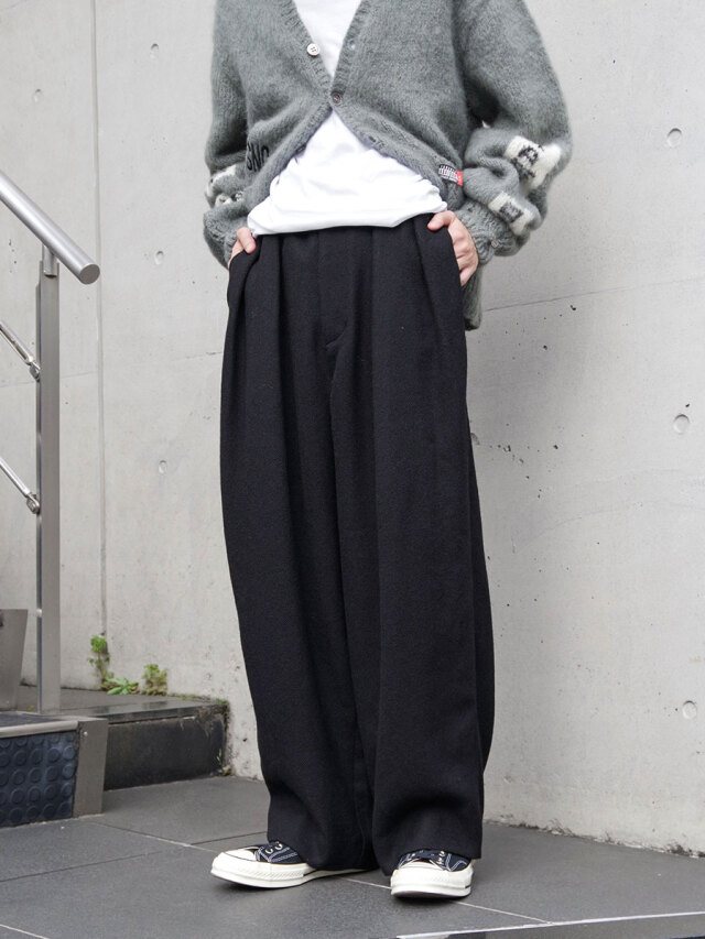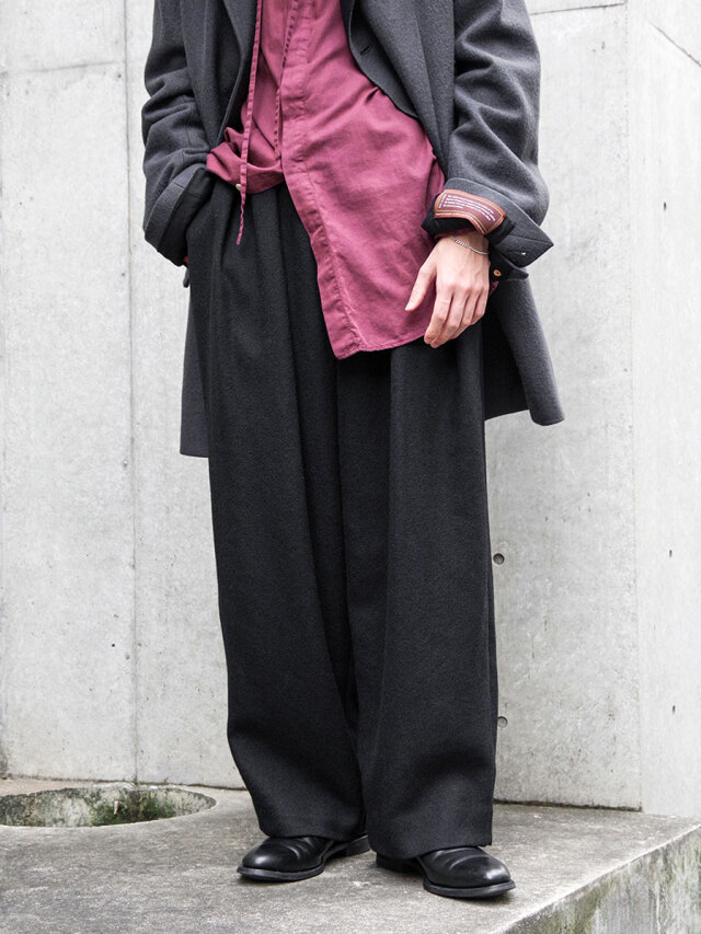 Crafted from premium 2/24 botany wool — a fine, high-quality fiber spun and woven in Japan’s renowned Bishu textile region — these wide trousers embody exceptional softness and warmth.