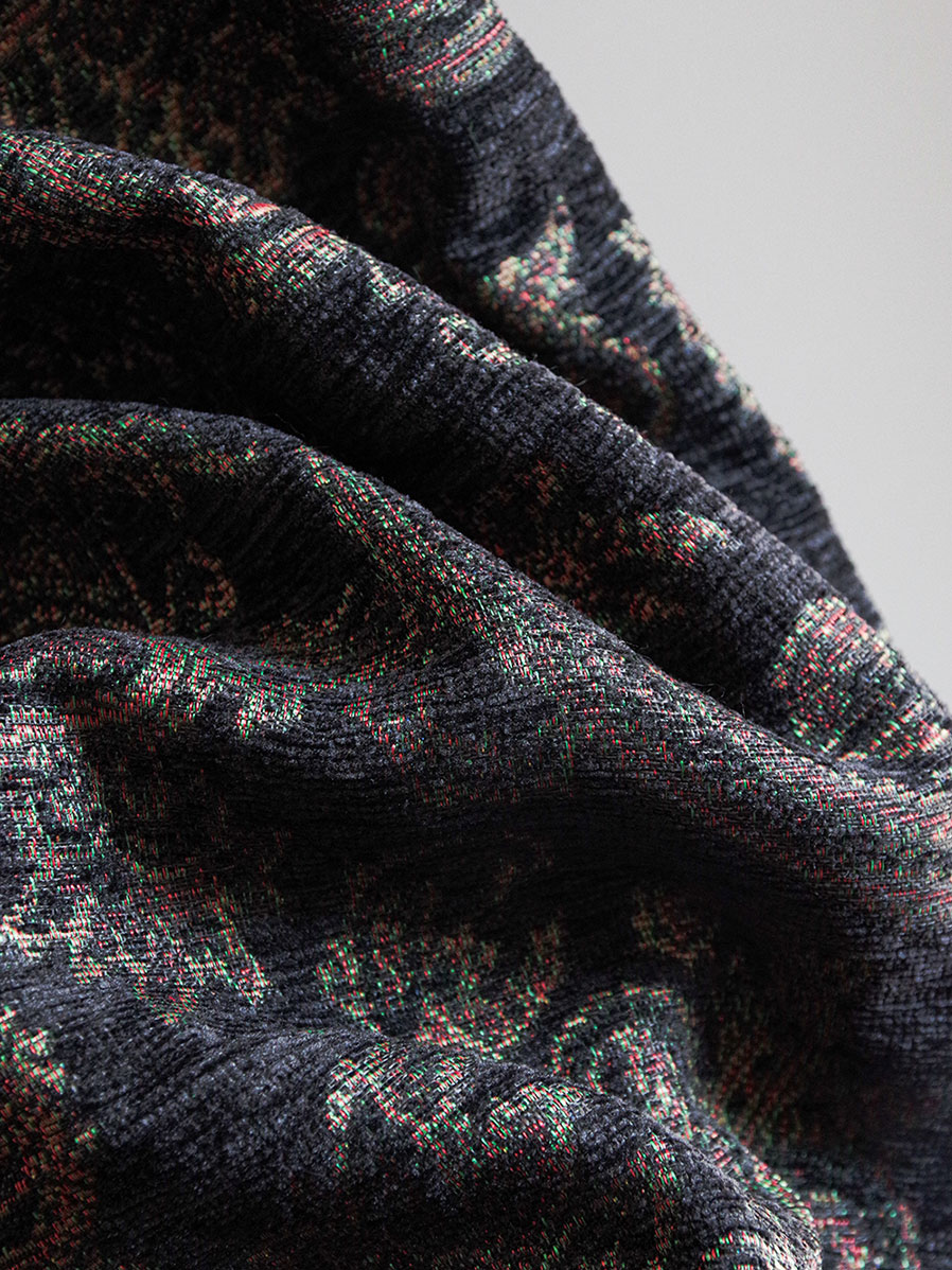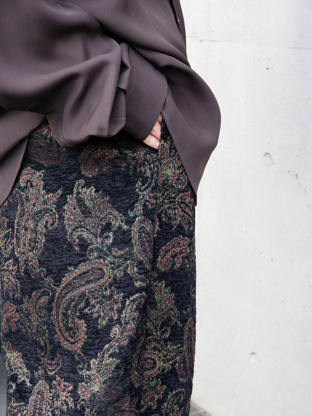存在感のあるペイズリー柄は、シンプルなトップスとの組み合わせでもスタイリングに奥行きを与え、秋冬のコーディネートに華やかさを添える一本です。