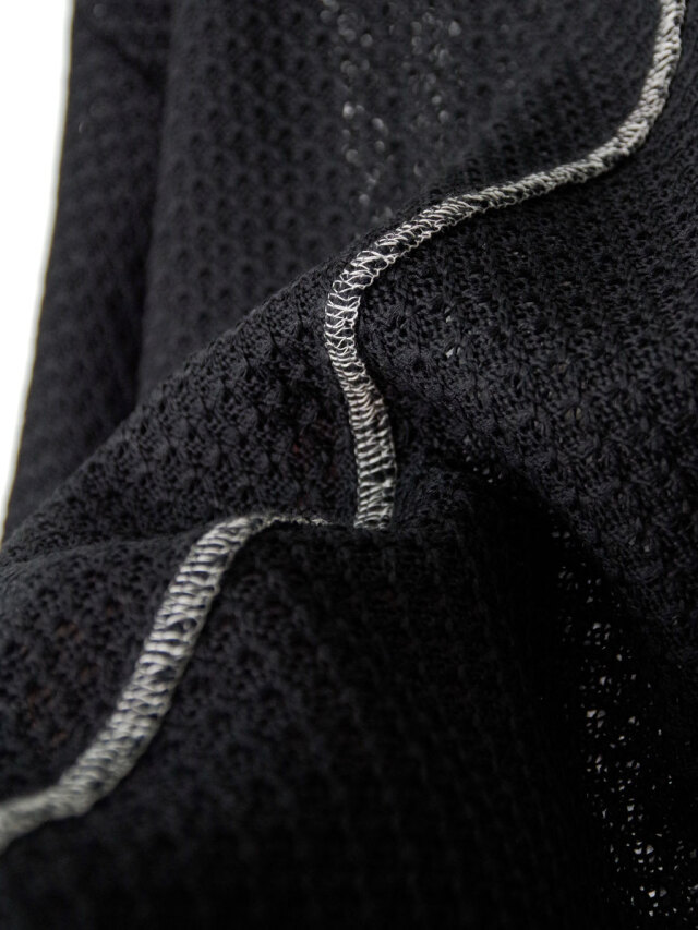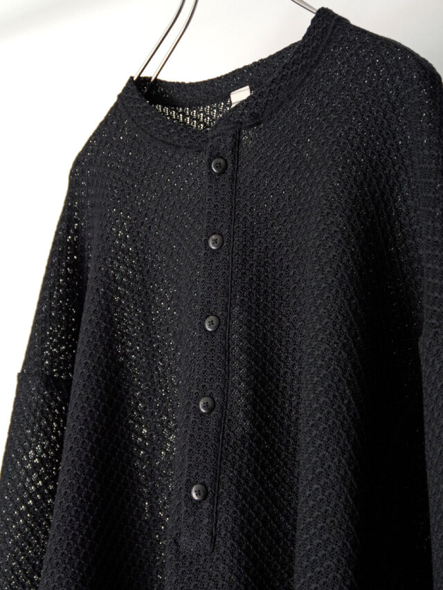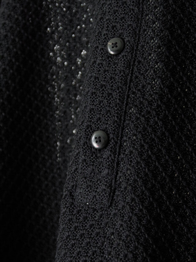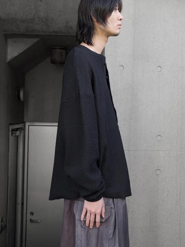 Taking advantage of its subtle sheerness, the piece works well in a variety of layered styles, from pairing with shirts or cut-and-sew tops to wearing it over a tank top in warmer seasons. The rich texture also makes it appealing as an inner layer.