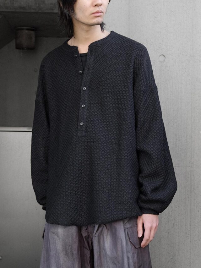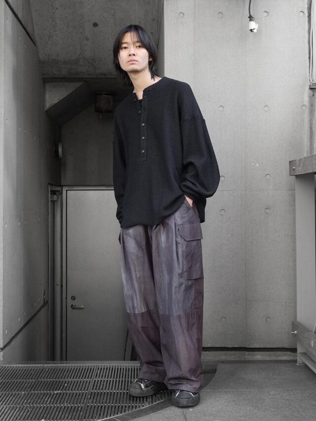 A pullover item characterized by SHINYAKOZUKA’s signature relaxed silhouette.