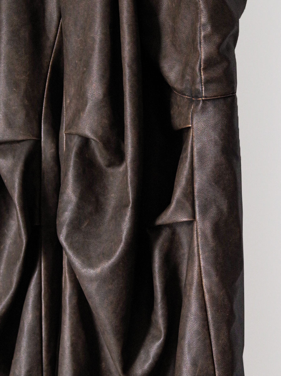Despite the leather-like appearance, the fabric remains soft and fluid, offering effortless comfort and drape.