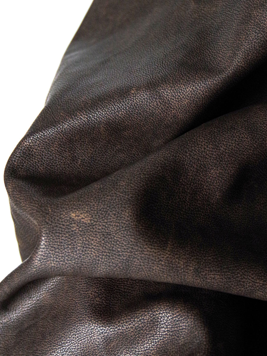レザー特有の硬さはなく、柔らかくくったりとした風合いが特徴。