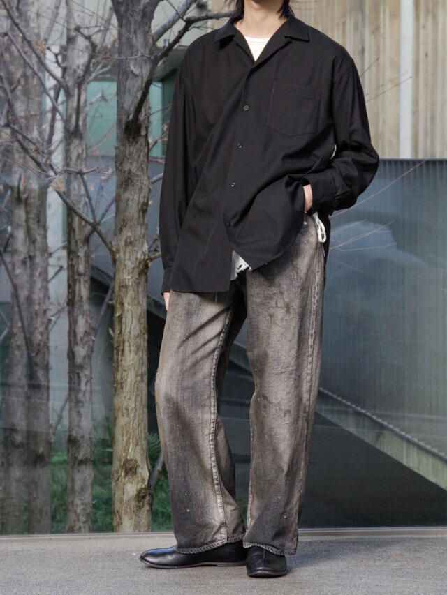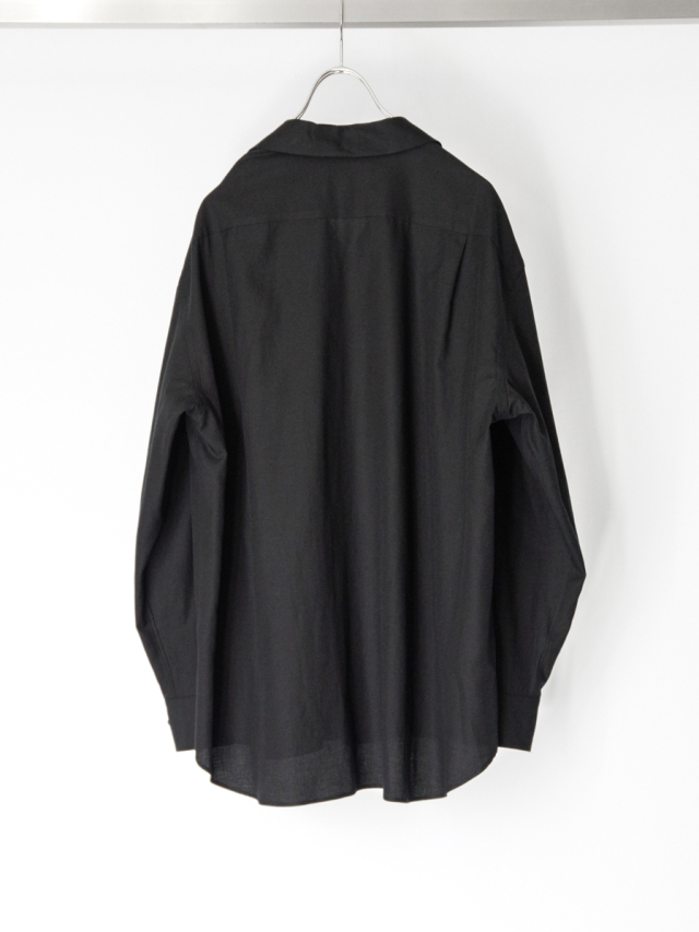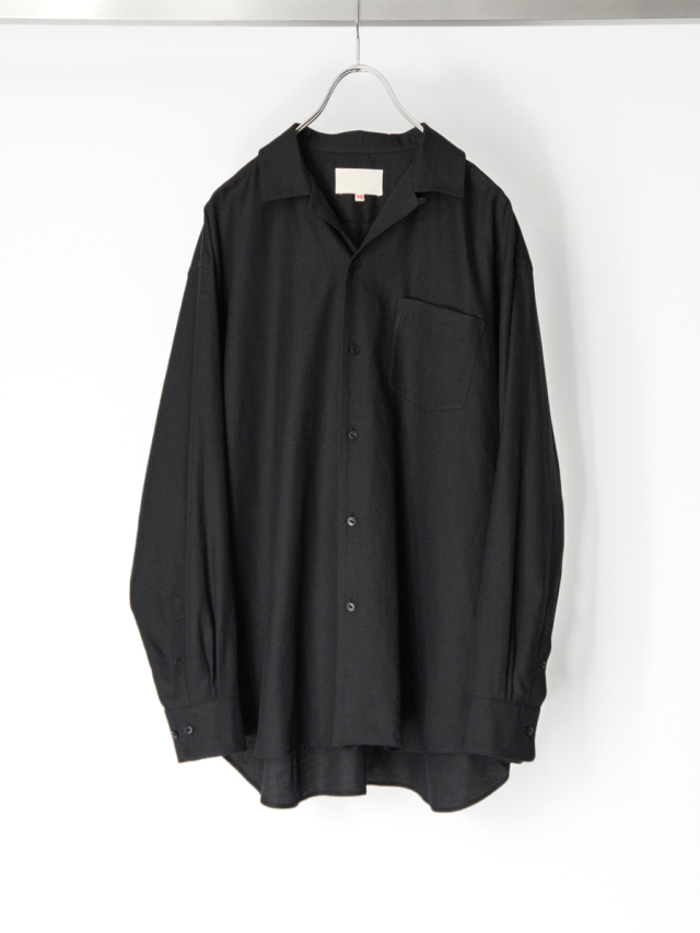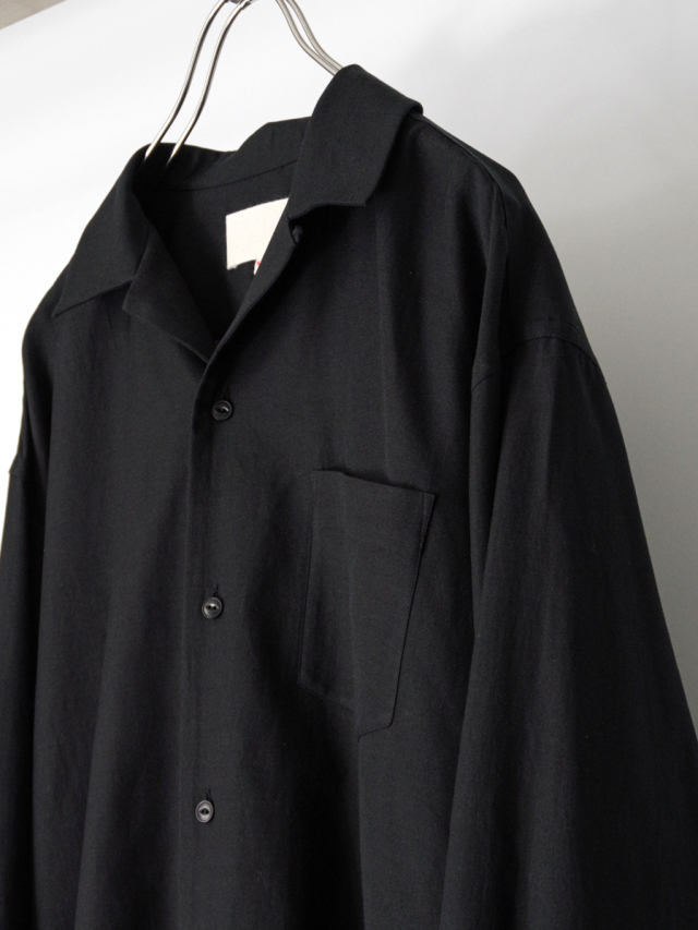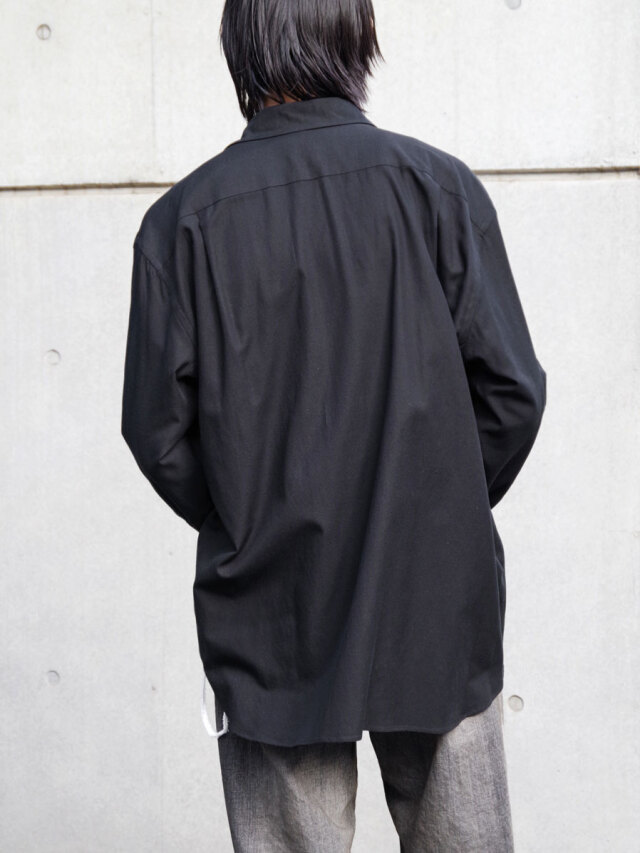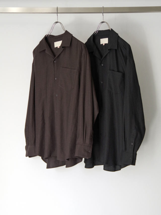 YOKO SAKAMOTOらしい解釈で仕立てられた、セミルーズシルエットのオープンカラーシャツ。シーズンレスに使いやすいロングスリーブモデルが登場。