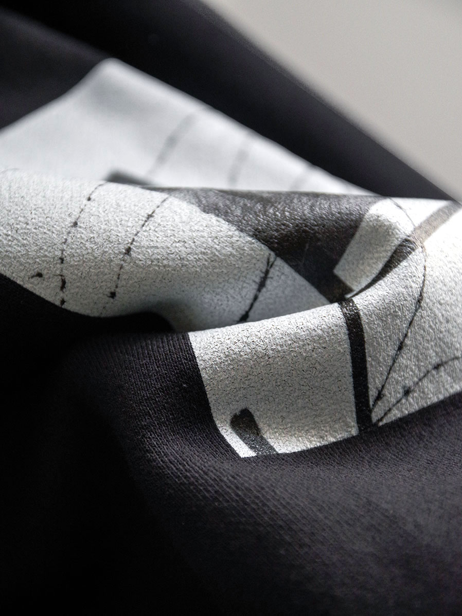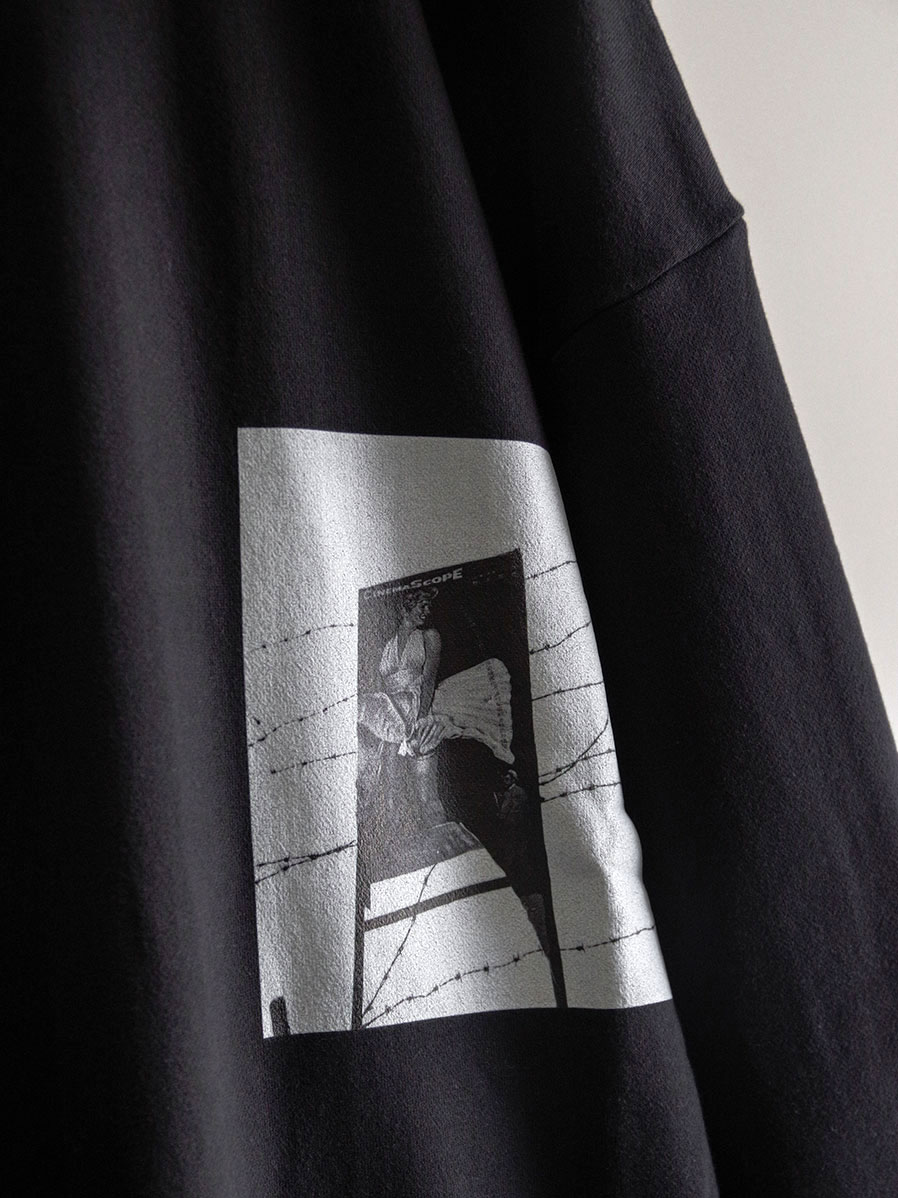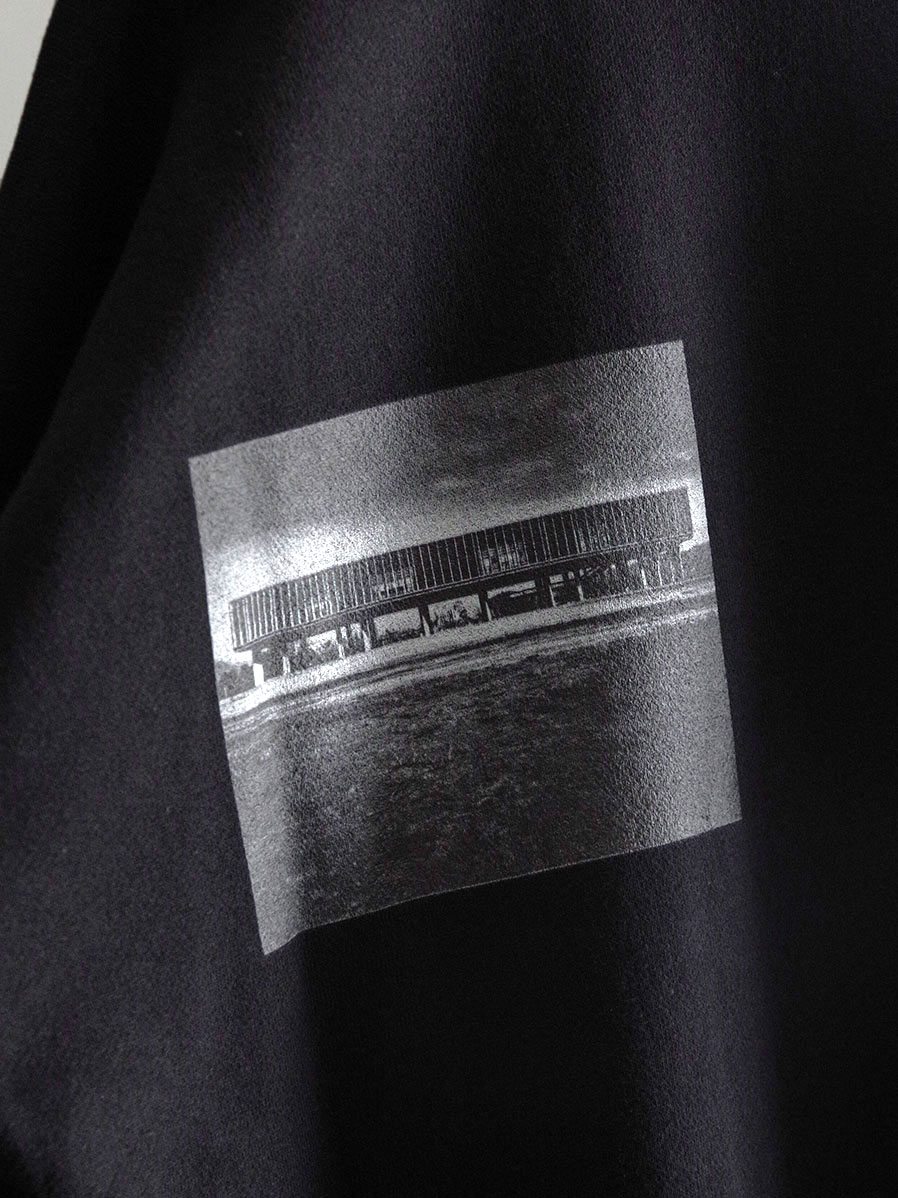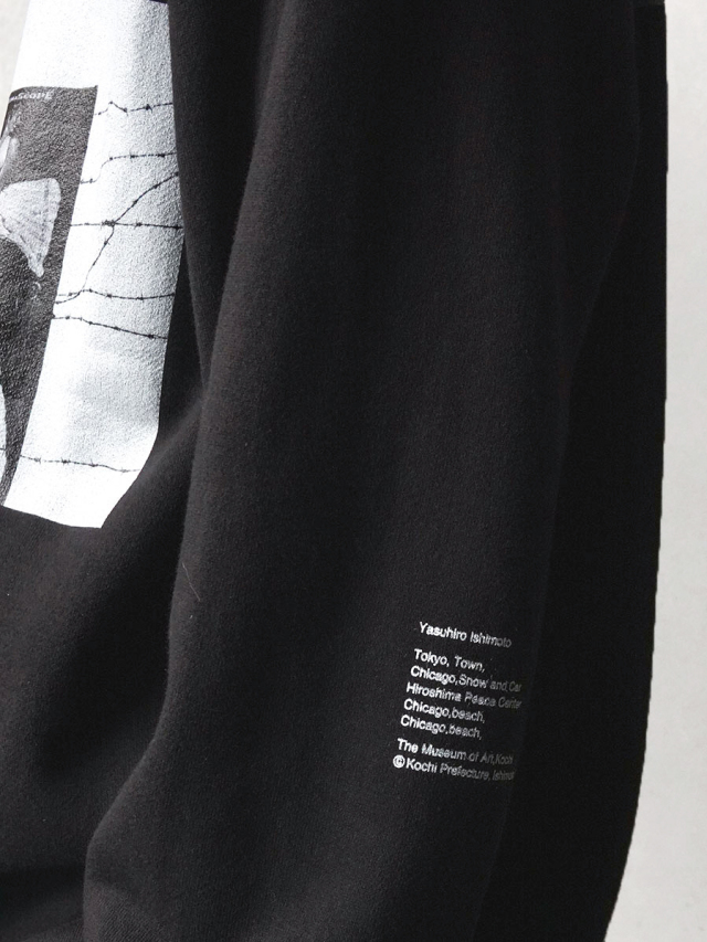 The front is adorned with a vivid print of a work by acclaimed photographer Yasuhiro Ishimoto, infusing everyday wear with an artistic dimension.