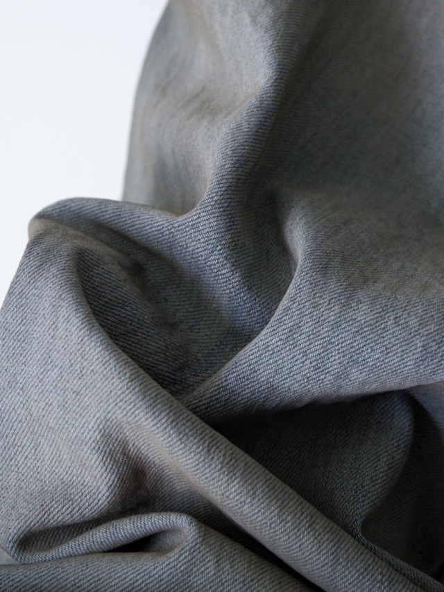 In INDIGO, a deliberately faded base color is layered with light, medium, and deep tones using custom-mixed dyes. This process refines the sensual tonal balance and produces a mood that has become symbolic of ANCELLM.