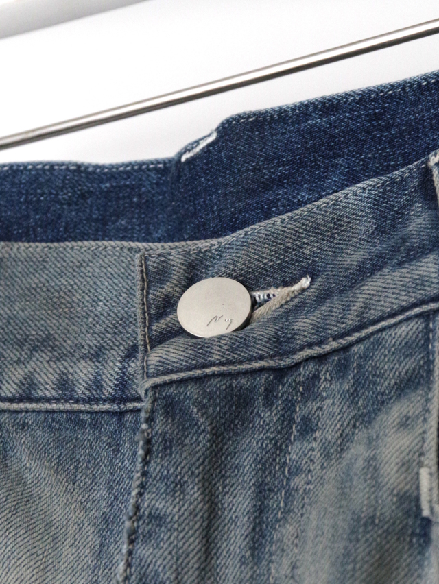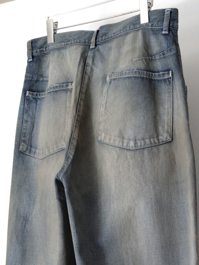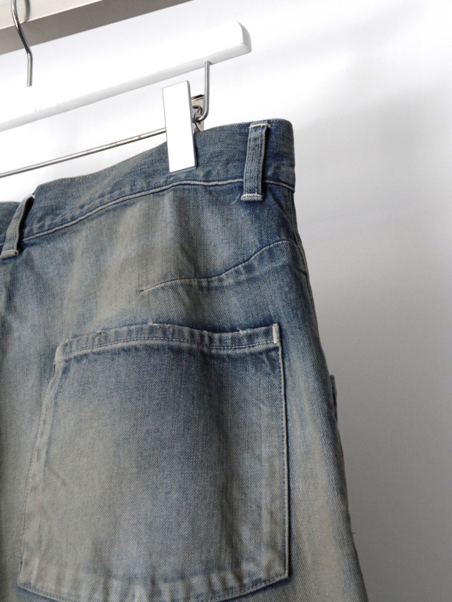By applying trouser pattern techniques, this design creates a slightly dressier outline than conventional denim. The elegant drape when worn and even the subtle volume of the pockets are carefully calculated, resulting in a uniquely constructed pattern that presents a refined standing silhouette.