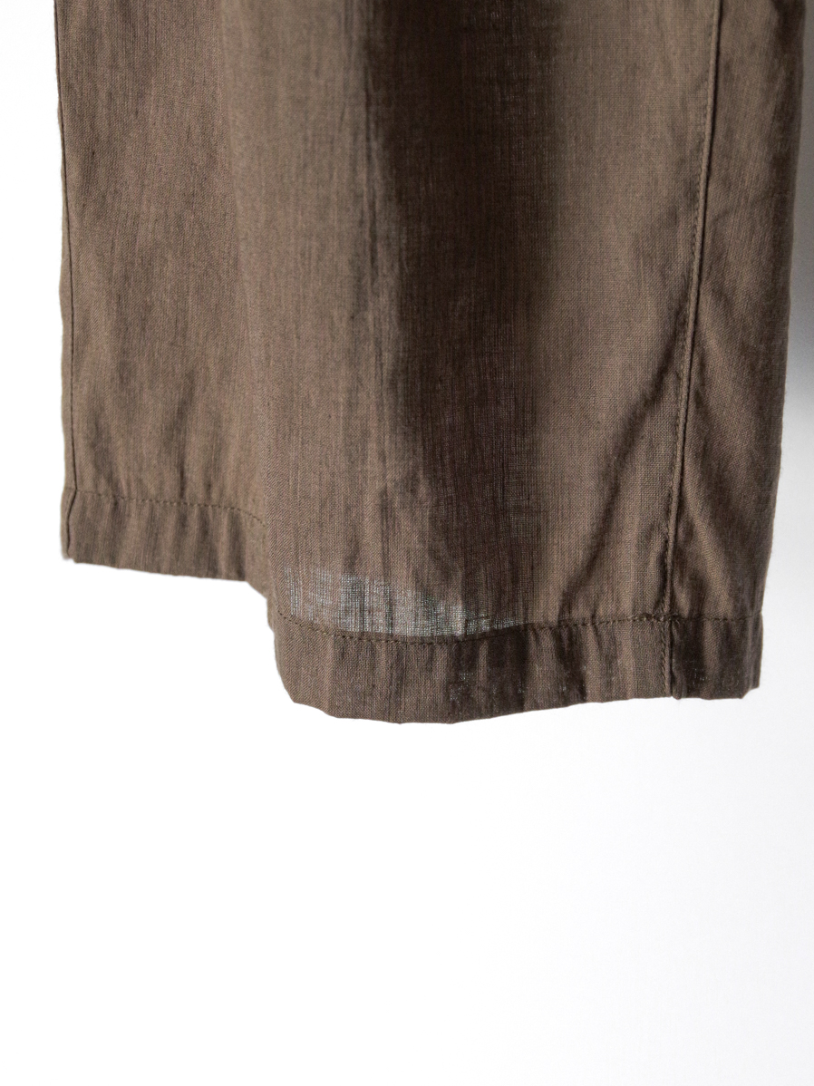 リネンとナイロンのざっくりとした肌触りは非常に心地よく、真夏でも涼しく快適に着用できる一本です。