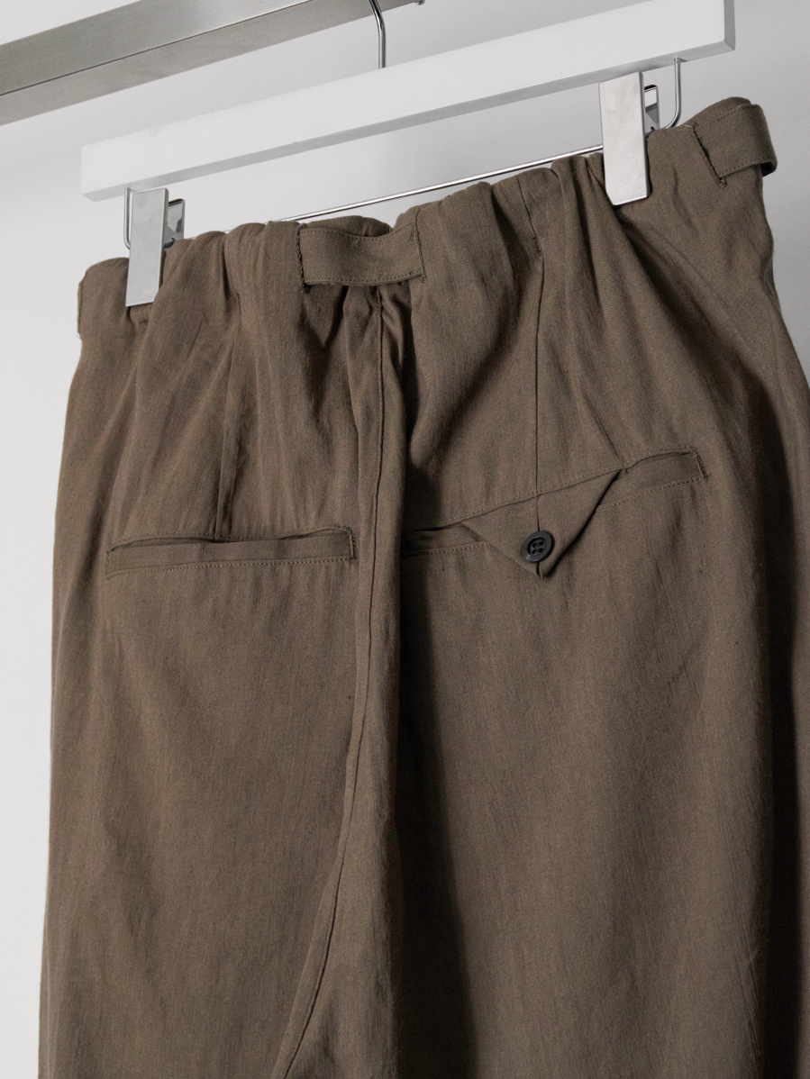 リネンとナイロンをブレンドした素材で軽やかに仕立てたスラックス。