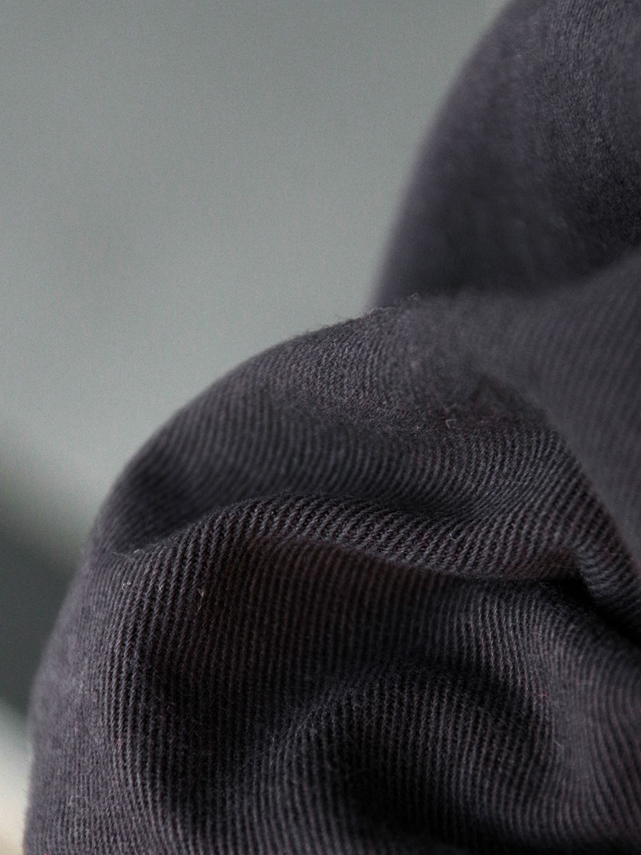未だ紡績技術が発達していない時代の素材感を目指したとされる生地は、独特のムラ感と膨らみで味わいある表情が表現されています。