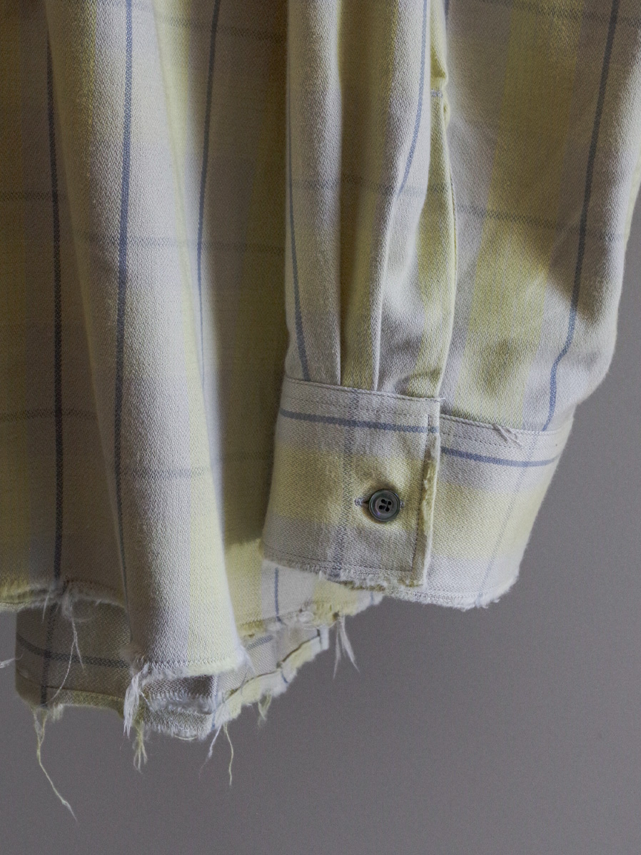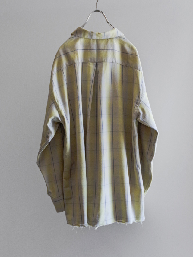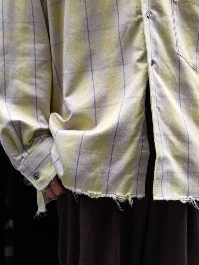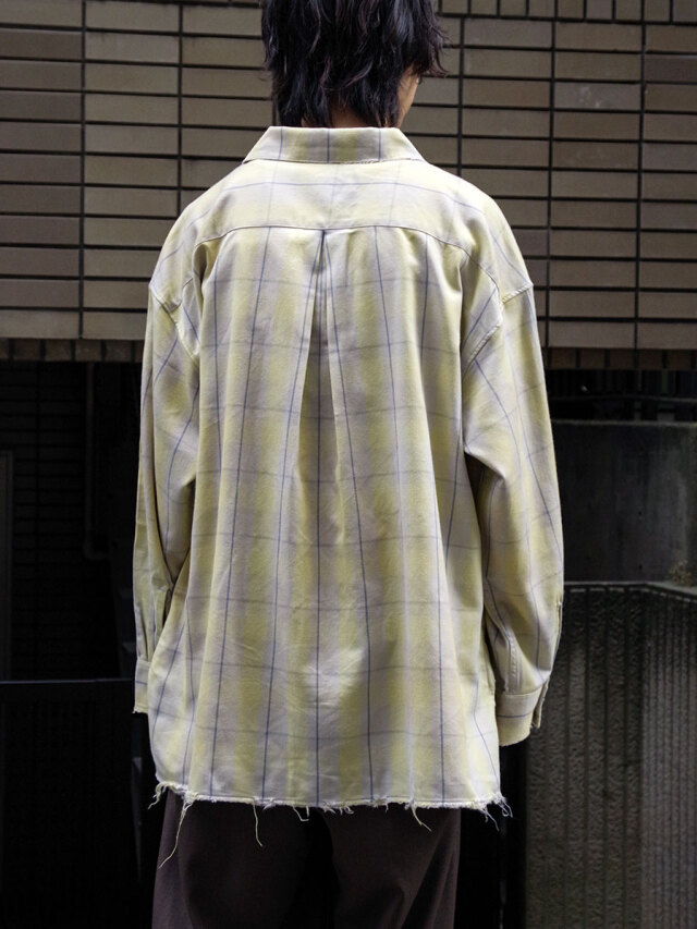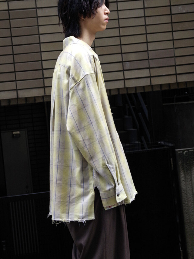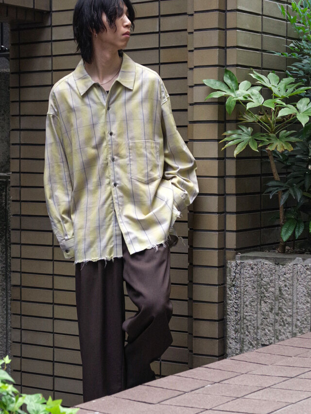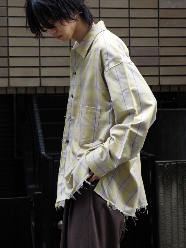 Random distressing is added in the finishing stage to give the shirt depth and character. The original cotton-rayon fabric combines structure with fluid drape, making it suitable for year-round wear. Its smooth texture feels gentle against the skin.