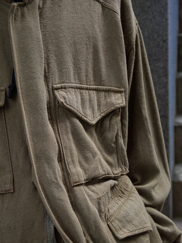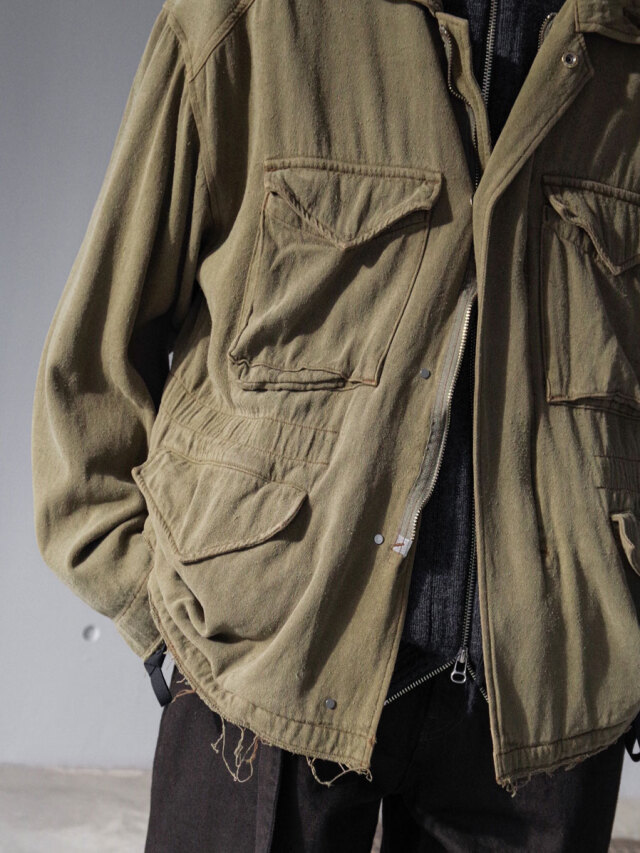 軍物に見られる無骨さではなく、落ち感と美しさを両立させた、ブランドならではの上質な解釈が光る一着です。