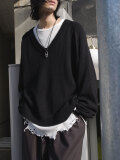 大胆に開いたVネックラインと、ゆったりと広がるシルエットが特徴の一枚。