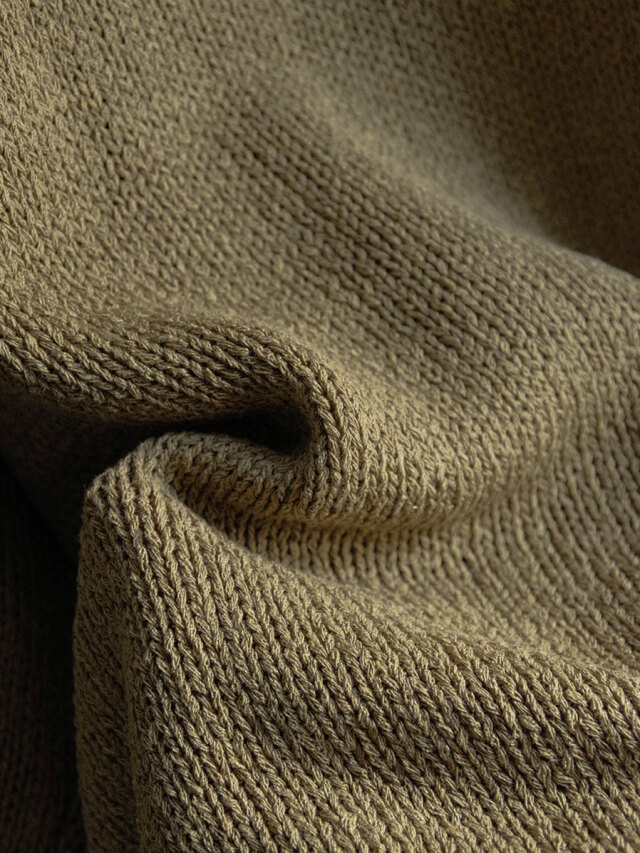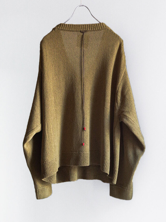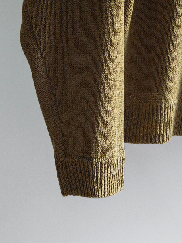 身幅と着丈をしっかりと取り、生地を贅沢に使用。脇や袖まわりに生まれる“溜まり”がニットでありながらも美しいドレープを描き、シンプルな中に確かな存在感を宿します。