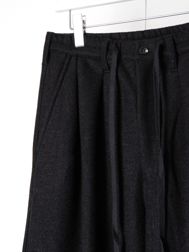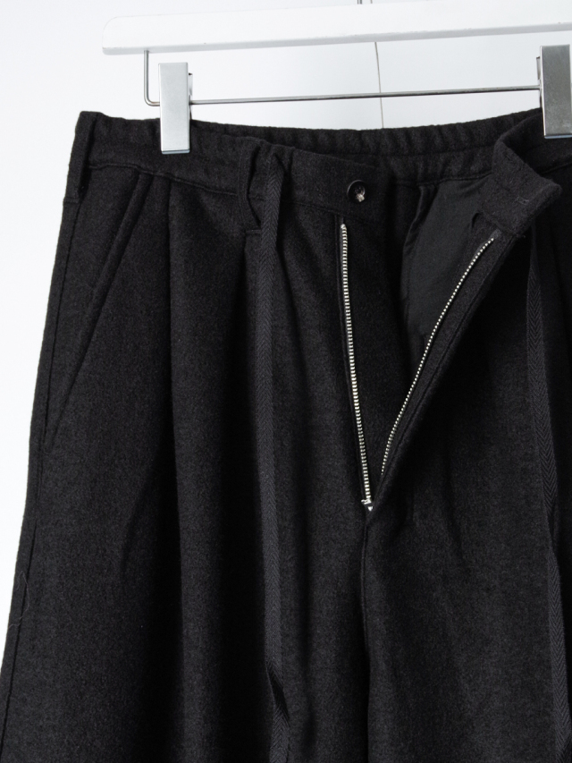 肉感のあるウールナイロン生地を使用し、ボリュームを持たせて仕立てられたイージースラックス。