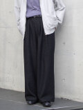 シルエットは寸法上では非常にワイドながら、深めに畳んだフロントのインタックによってボリュームを美しく収め、立体感を持たせながらも裾までスッと綺麗に落ちるラインを実現。ブランドならではのパターンワークが活きた仕上がりです。