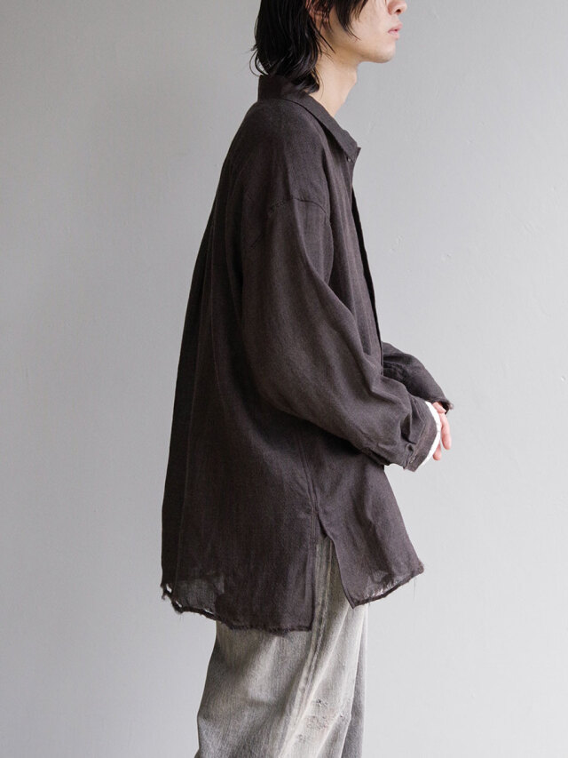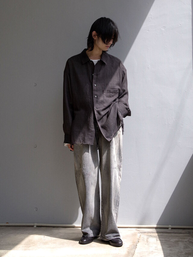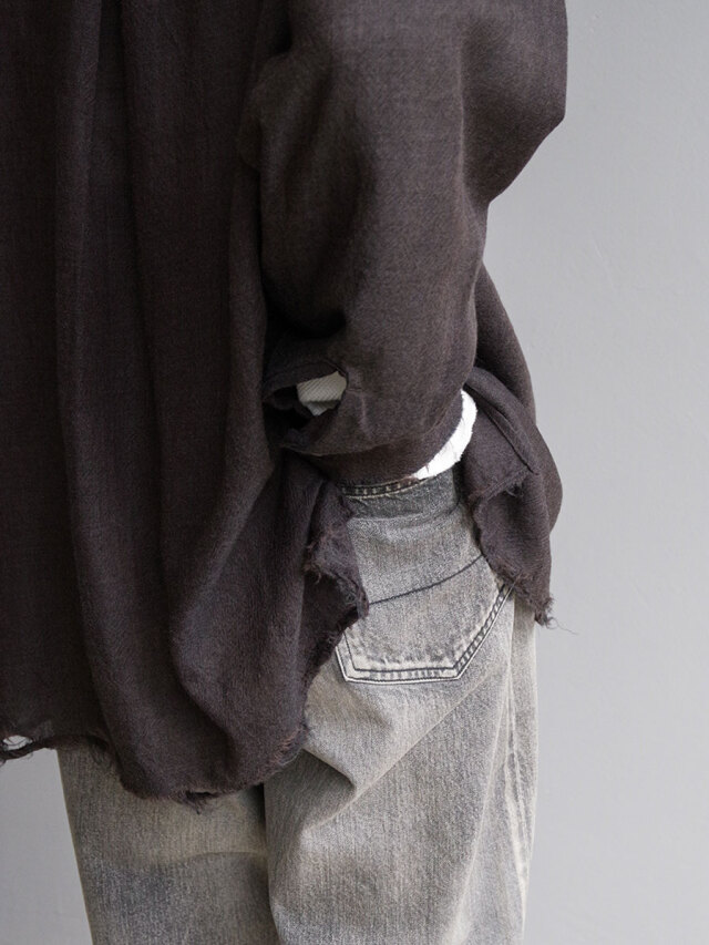 着込むことで糸の落ちる分量が増し、生地がより柔らかくドレープ性を増すことで、動きのある表情が際立ち、美しい経年変化を楽しめる一着です。