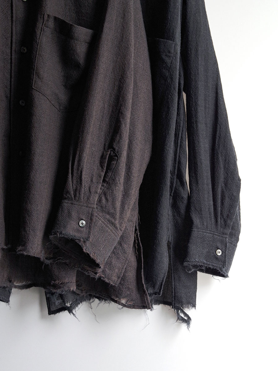 Though rooted in a classic silhouette, it incorporates raw-edge finishing at the collar, cuffs, and hem, adding subtle character while maintaining a clean overall look to highlight the beauty of the fabric.
