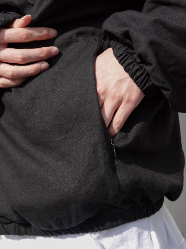 The final piece of the 2025 Spring/Summer Collection is a one-of-a-kind blouson born from the beautiful harmony of silk noil and linen.