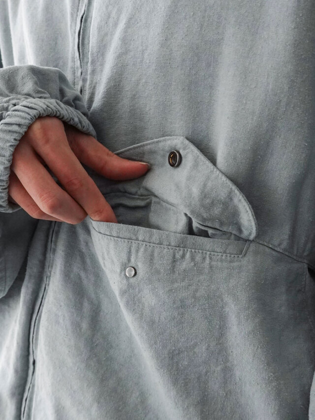 The pattern making was based on the structure of a kimono, and delicate adjustments were made to the design of the shoulders and sides to pursue a beautiful fit and silhouette when worn.