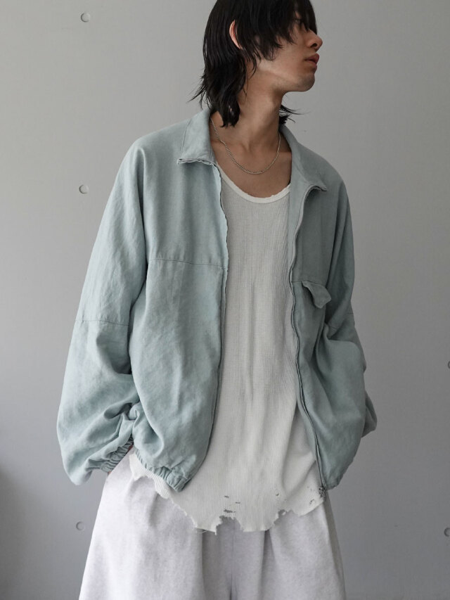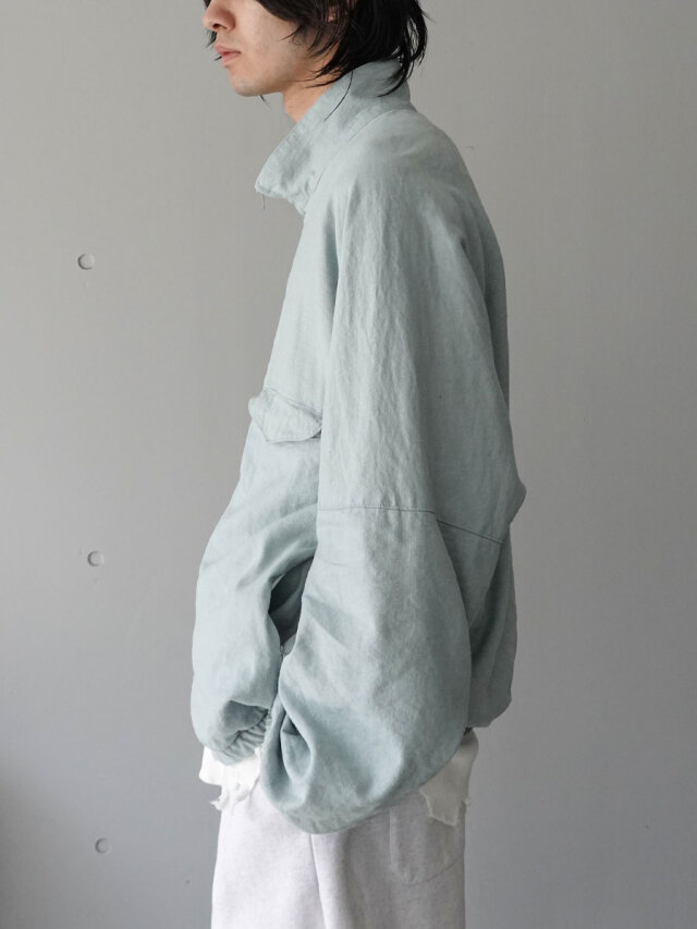 The final piece of the 2025 Spring/Summer Collection is a one-of-a-kind blouson born from the beautiful harmony of silk noil and linen.