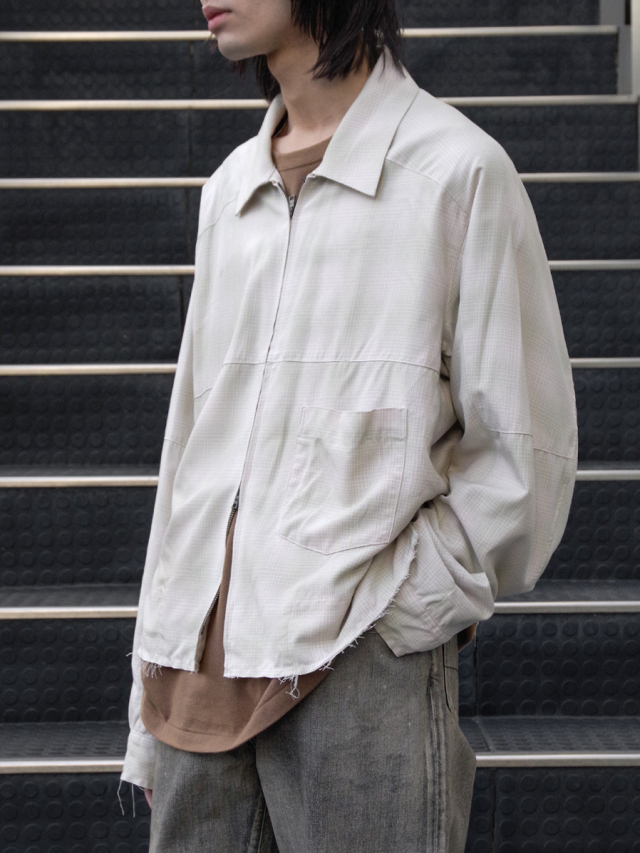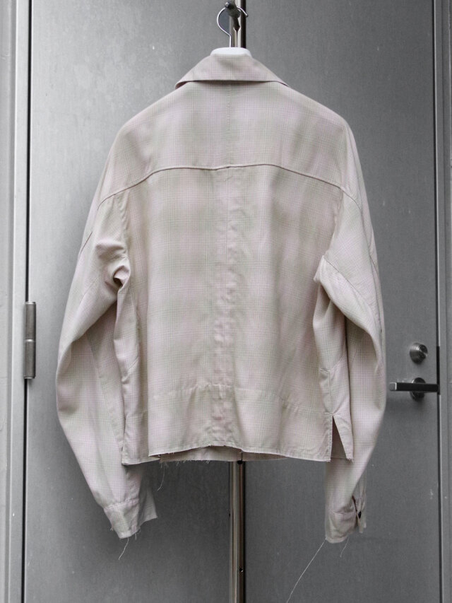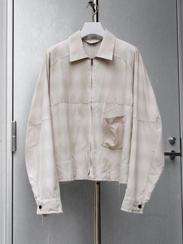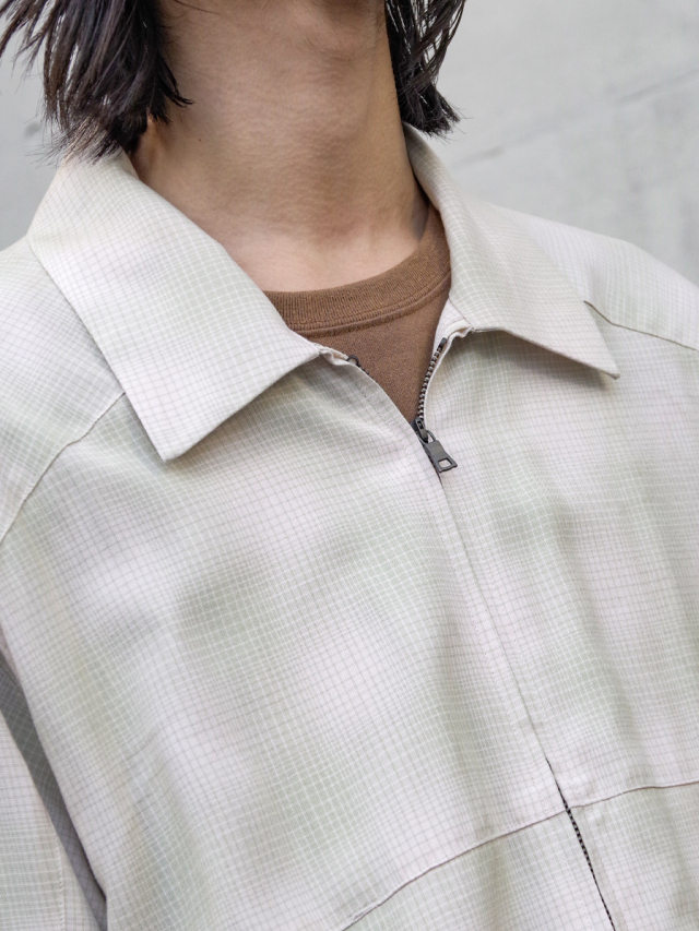 A short zip blouson that was reproduced after studying many vintage rayon materials and pursuing a good skin feel and comfortable fit. It is made of the same material as the OMBRECHECK SHIRT, and is finished as a piece that matches a light spring and summer style.